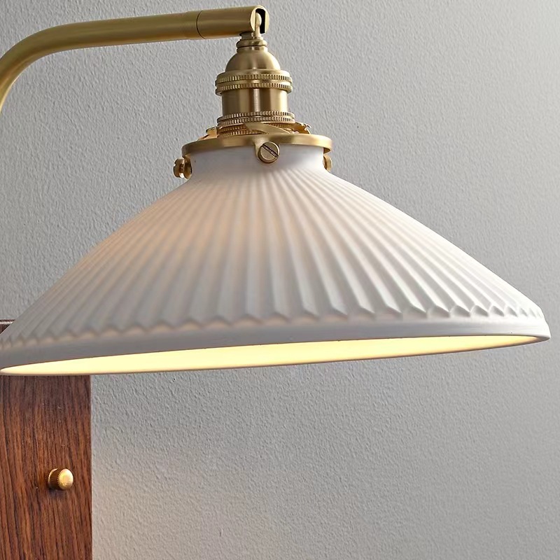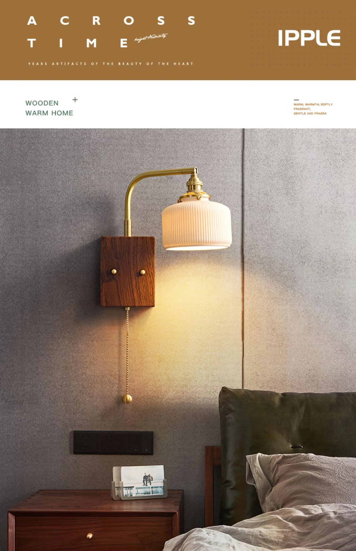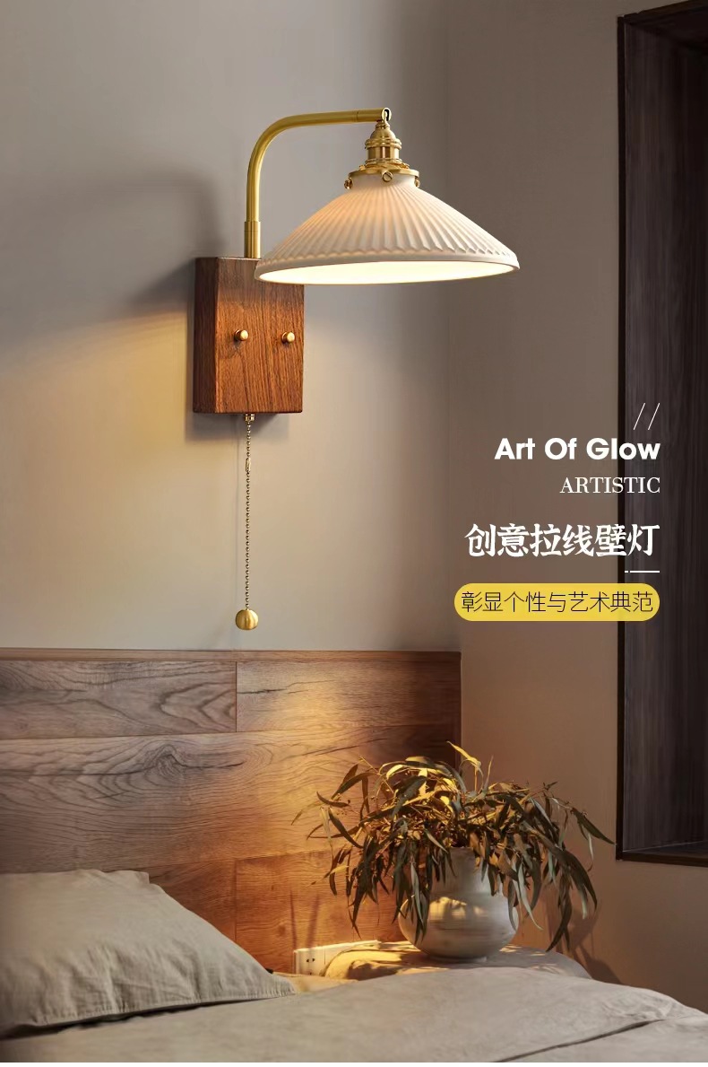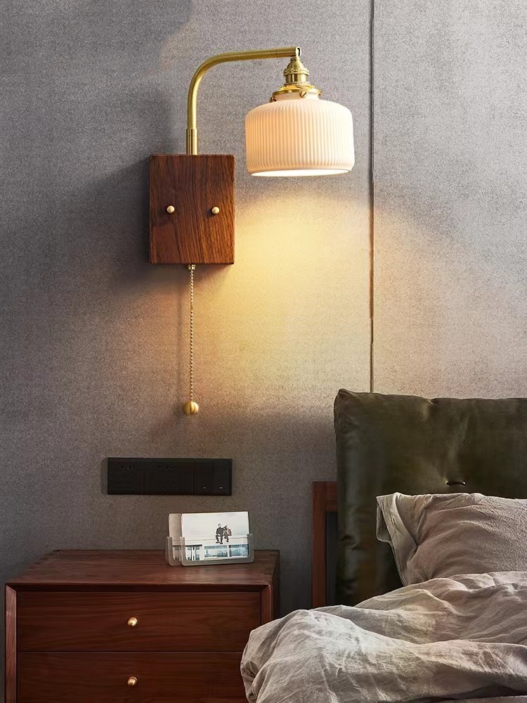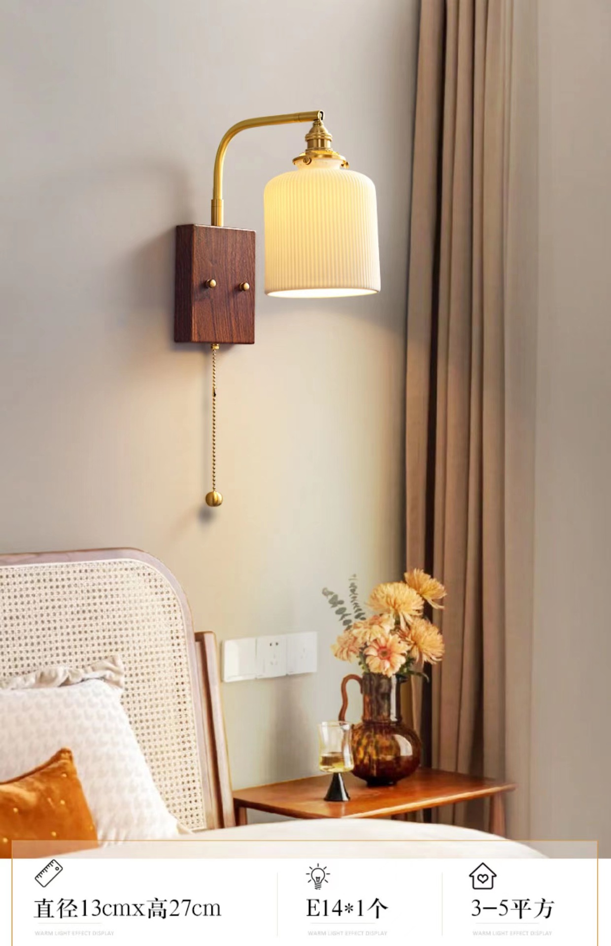 복고풍 이동식 호두 세라믹 벽 램프 새로운 중국 침대 옆 배경 벽 램프 홈스테이 케이블 모든 구리 램프