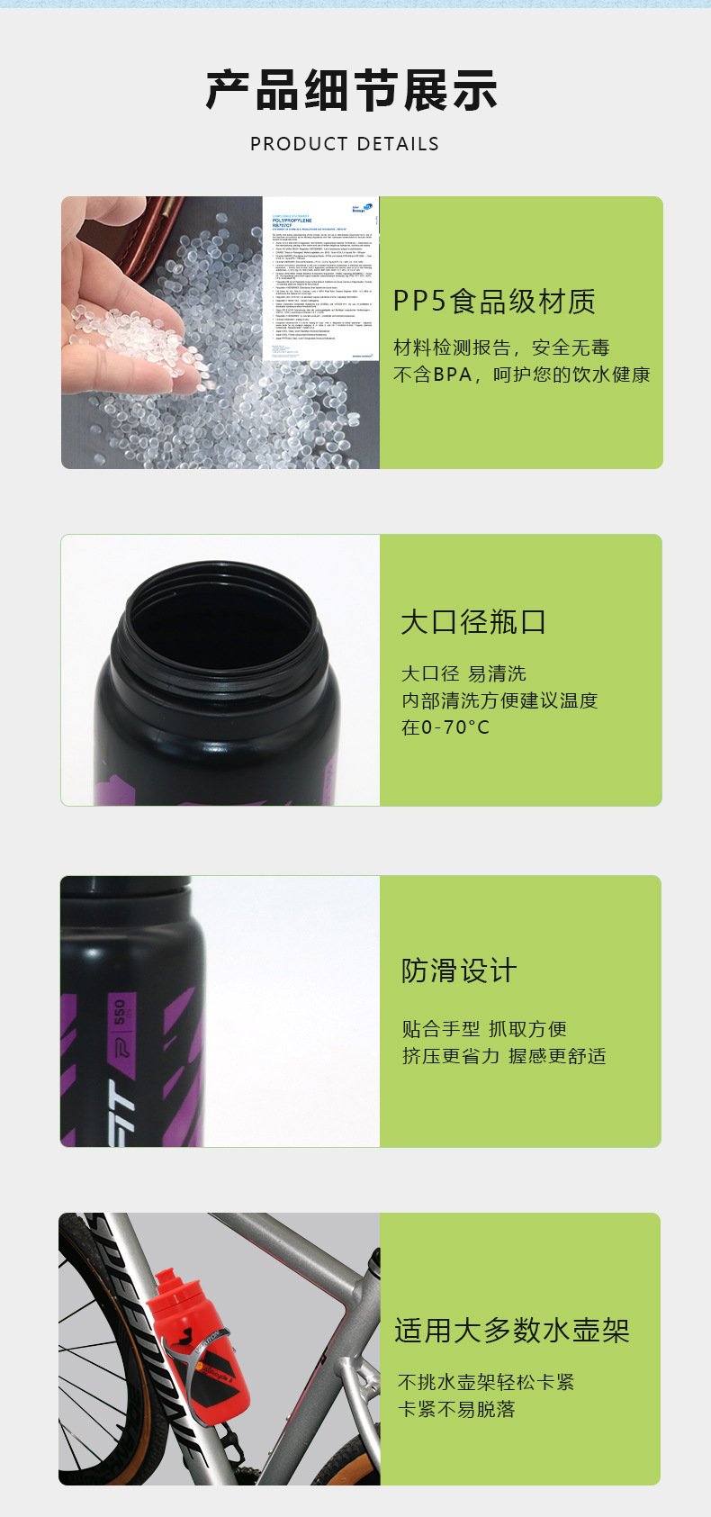 BPA 무료 승마 물 컵 도로 산악 자전거 빛 짜기 스포츠 물병 플라스틱 물 컵 공장