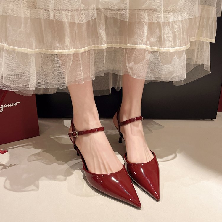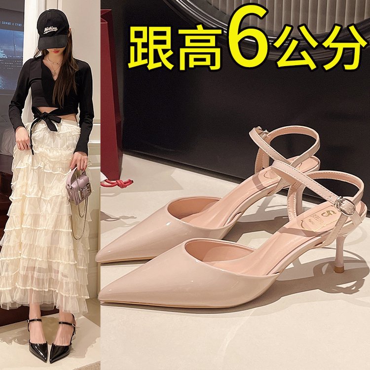 여성을위한 유럽과 미국의 패션 바오 터우 샌들 2025 여름 새로운 단색 기질 신발 연예인 대형 빈 하이힐스토어 가기