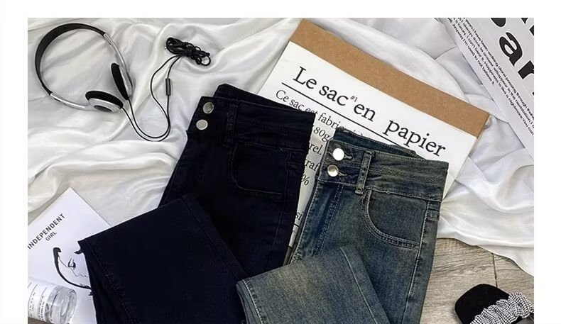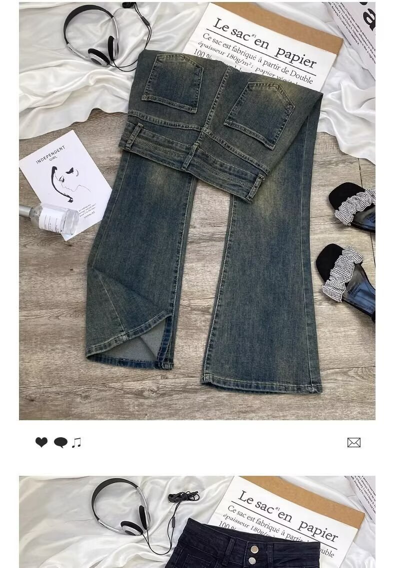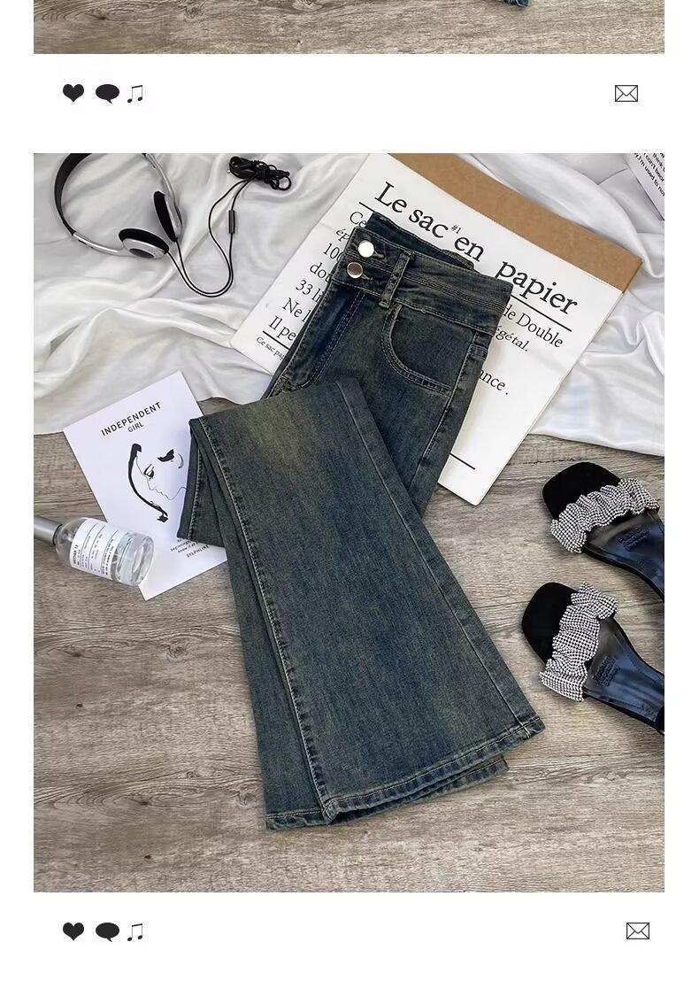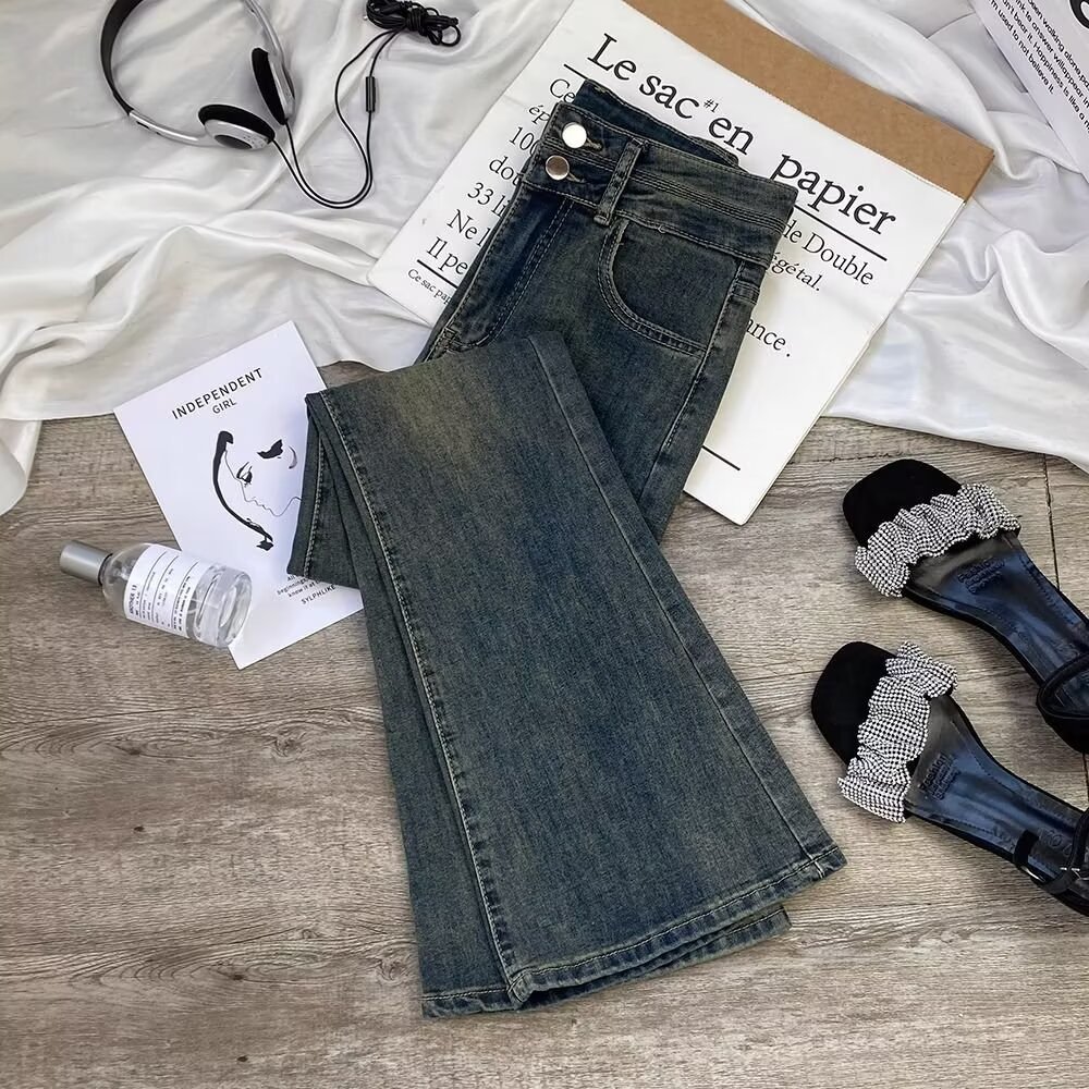 여성을 위한 새로운 시멘트 그레이 부츠컷 청바지 2025 하이웨이스트 슬림 패셔너블 다용도 소형 플레어 바닥 길이 바지