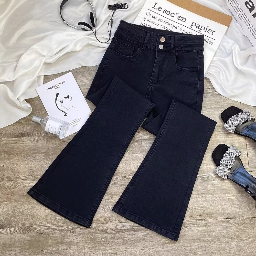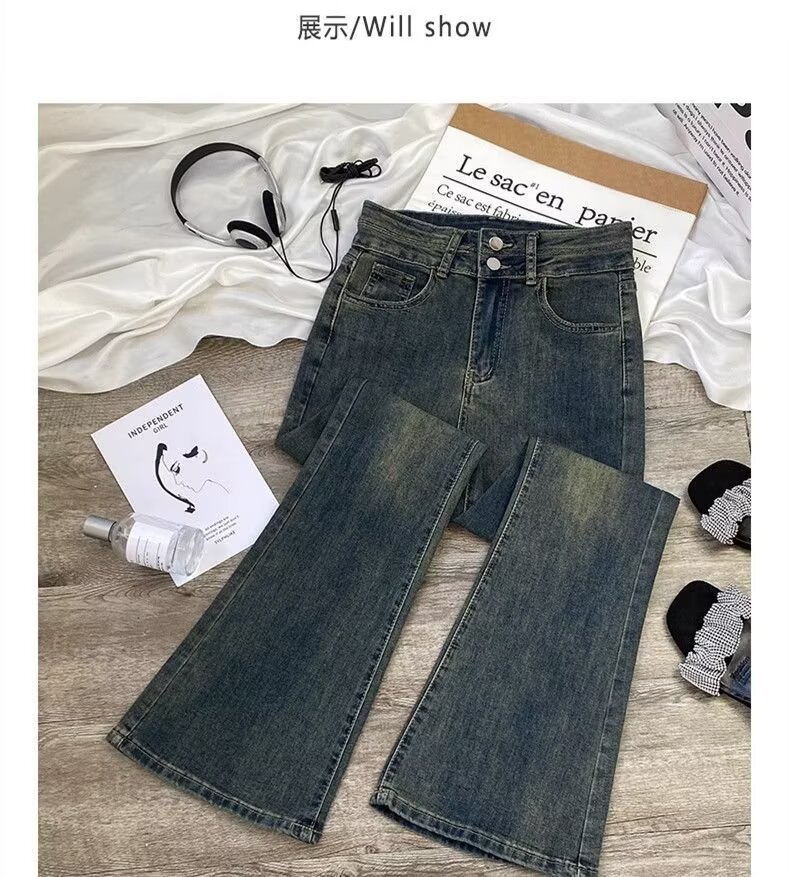 여성을 위한 새로운 시멘트 그레이 부츠컷 청바지 2025 하이웨이스트 슬림 패셔너블 다용도 소형 플레어 바닥 길이 바지스토어 가기