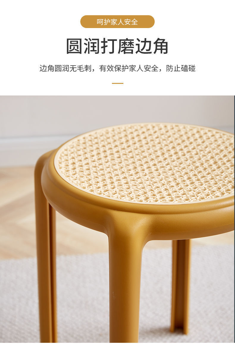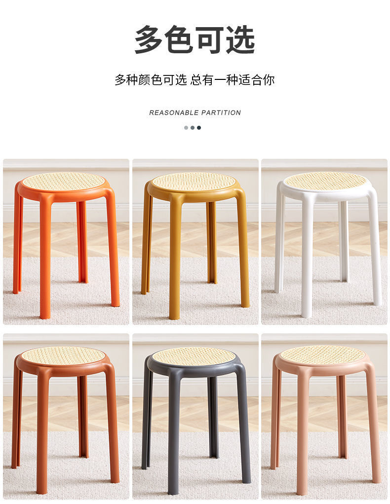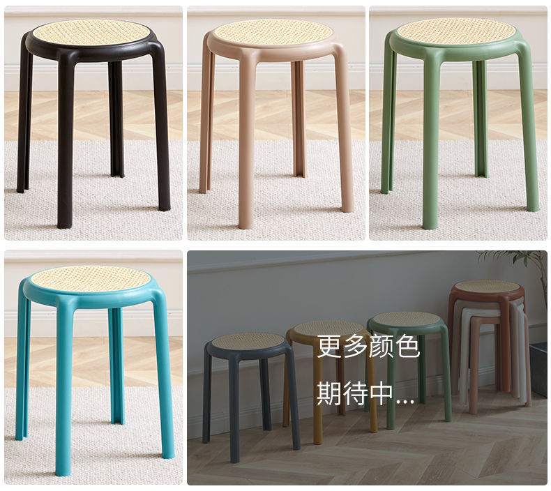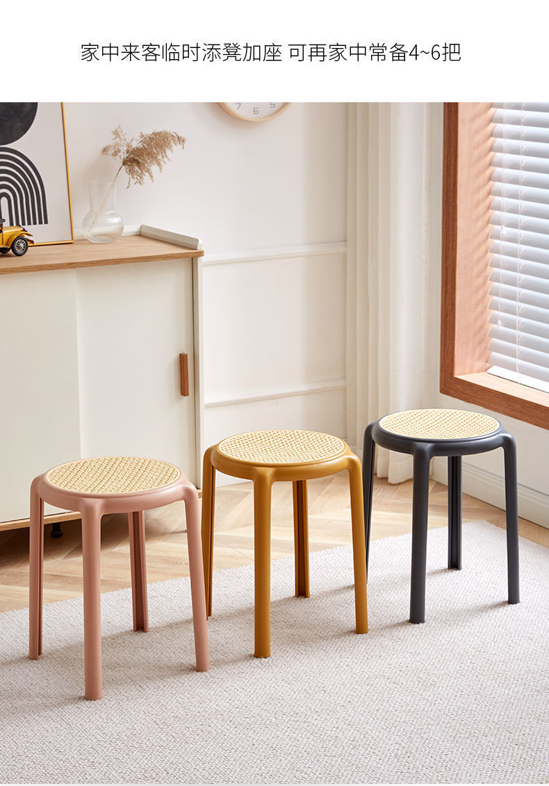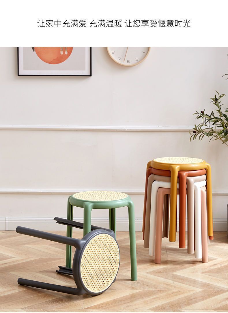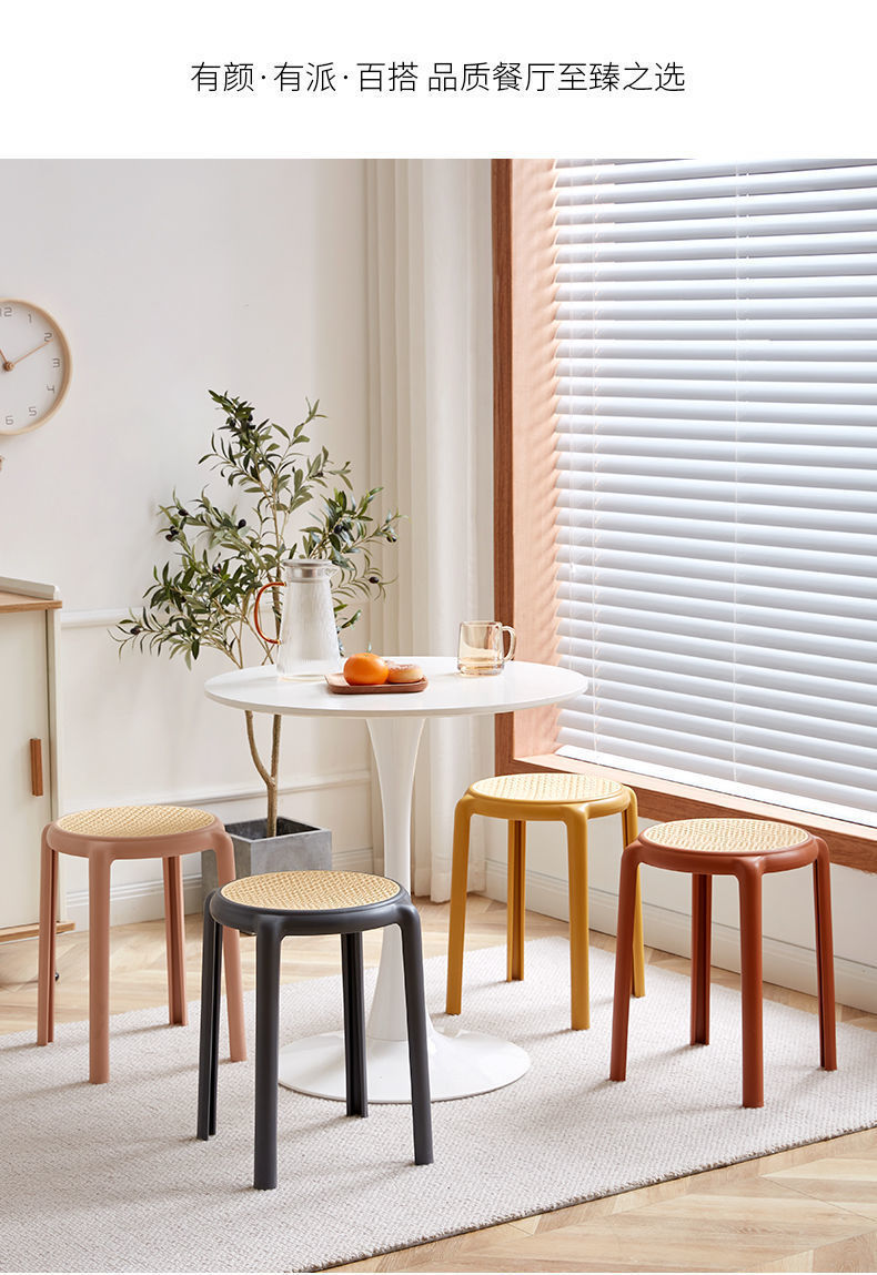 북유럽 스타일 라운드 의자 창조적 인 의자 플라스틱 의자 고무 의자 가정용 높은 의자 간단한 등나무 색상 두껍게 쌓을 수있는 의자스토어 가기