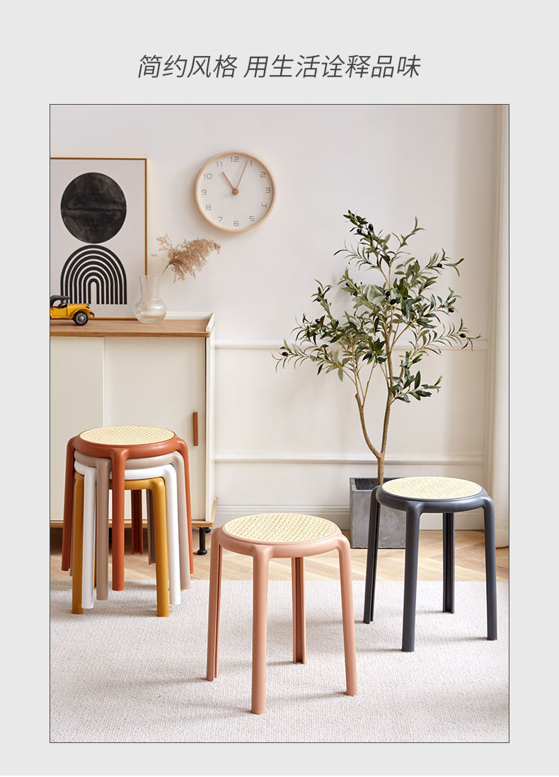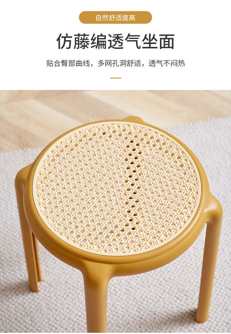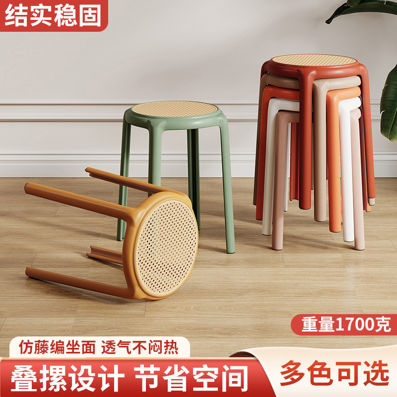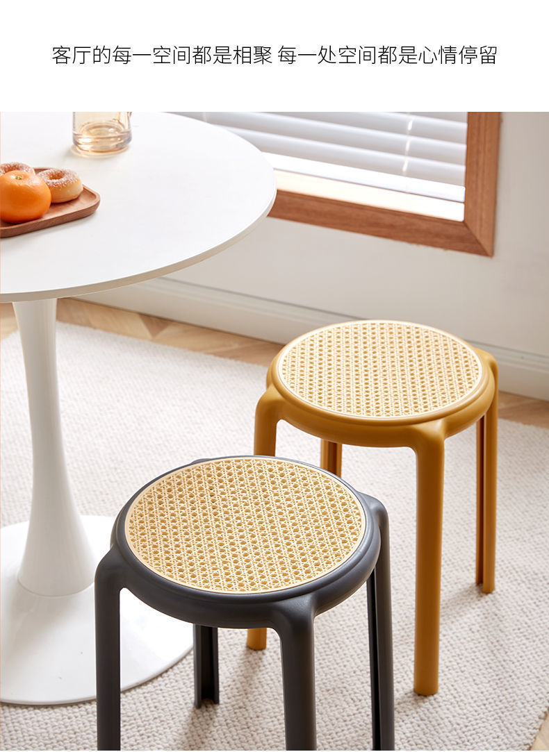 북유럽 스타일 라운드 의자 창조적 인 의자 플라스틱 의자 고무 의자 가정용 높은 의자 간단한 등나무 색상 두껍게 쌓을 수있는 의자