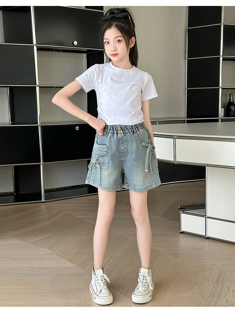소녀 데님 반바지 여름 얇은 아우터 2025 새로운 어린이 유행 서양식 여름 유행 바지스토어 가기