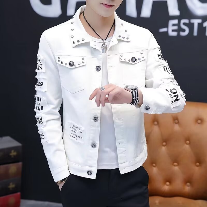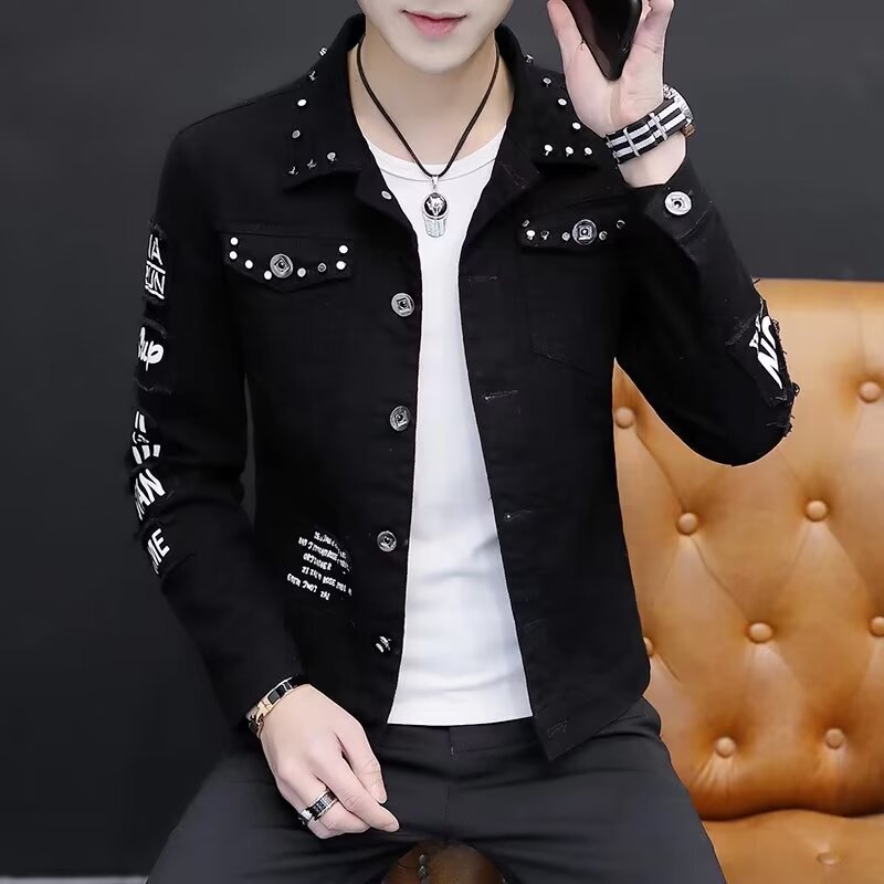 봄과 가을 데님 코트 남성용 한국식 슬림 핏 캐주얼 어퍼 의류 남성용 트렌디 브랜드 뉴 스타일 핸섬 블랙 오버홀 재킷