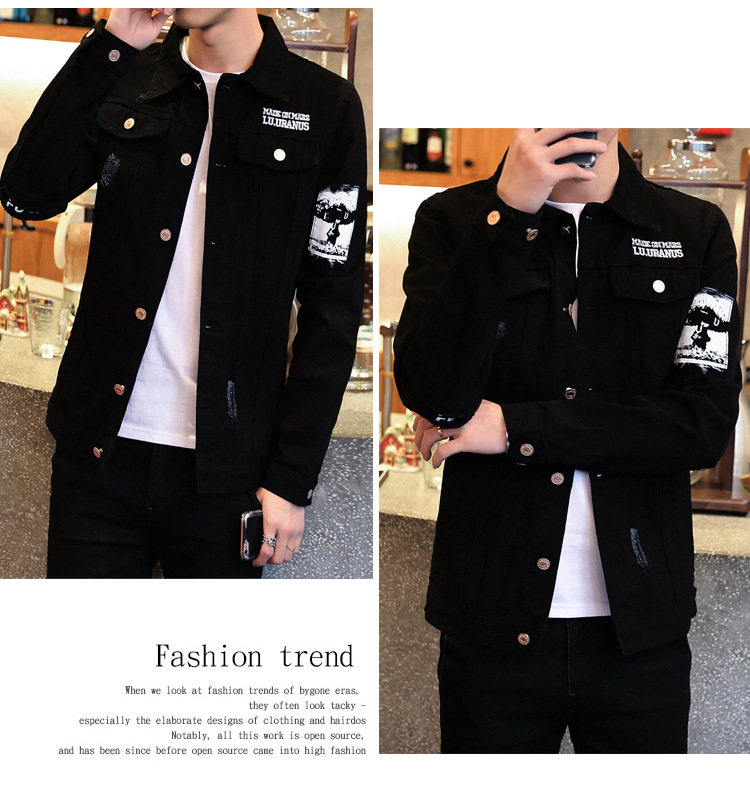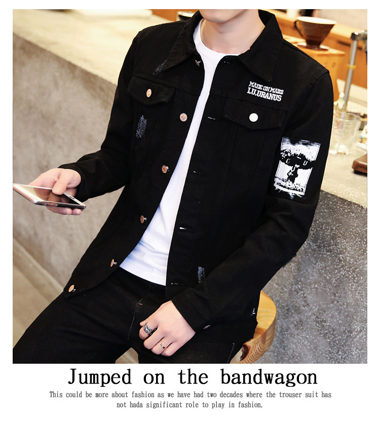 봄과 가을 데님 코트 남성용 한국식 슬림 핏 캐주얼 어퍼 의류 남성용 트렌디 브랜드 뉴 스타일 핸섬 블랙 오버홀 재킷스토어 가기