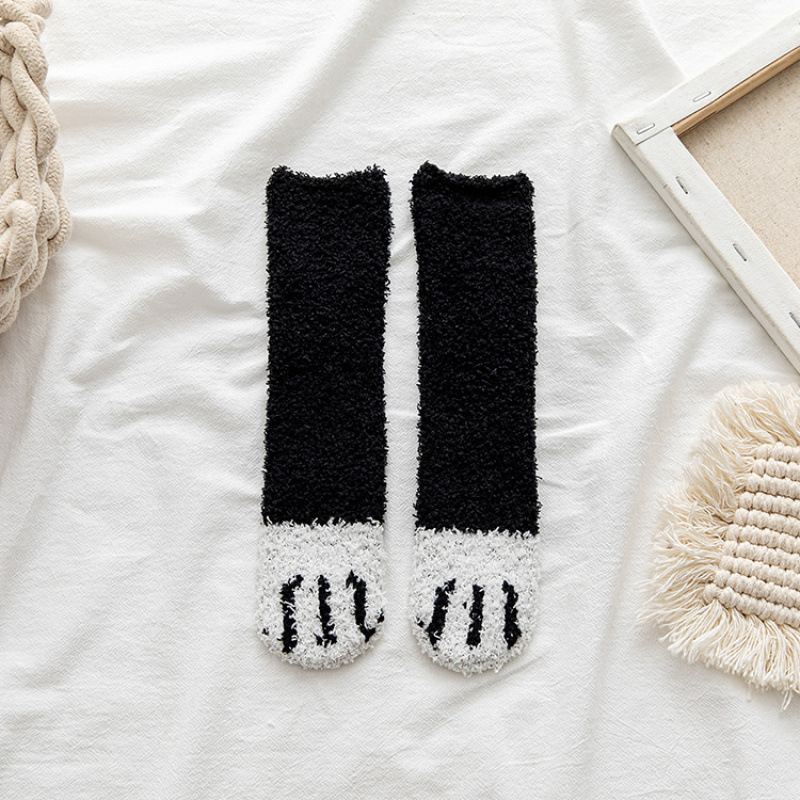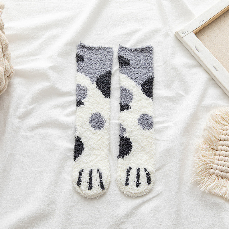 冬季猫爪睡眠袜珊瑚绒袜女地板袜保暖中筒袜点胶亲子宝宝儿童袜子