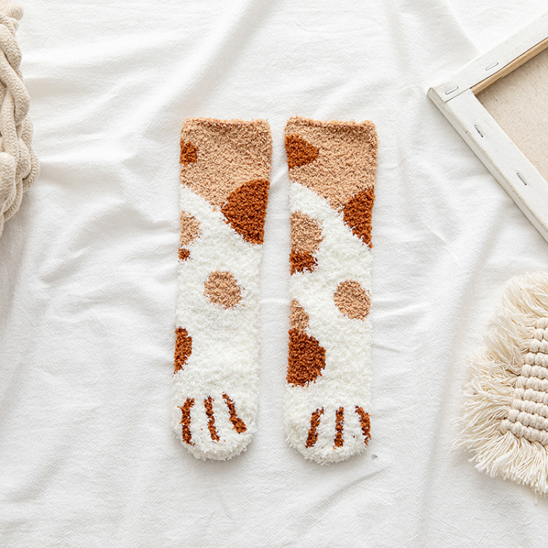여성을위한 겨울 고양이 발톱 산호 벨벳 수면 양말 따뜻한 중간 튜브 바닥 양말 부모-자식 아기 어린이 양말 도매스토어 가기