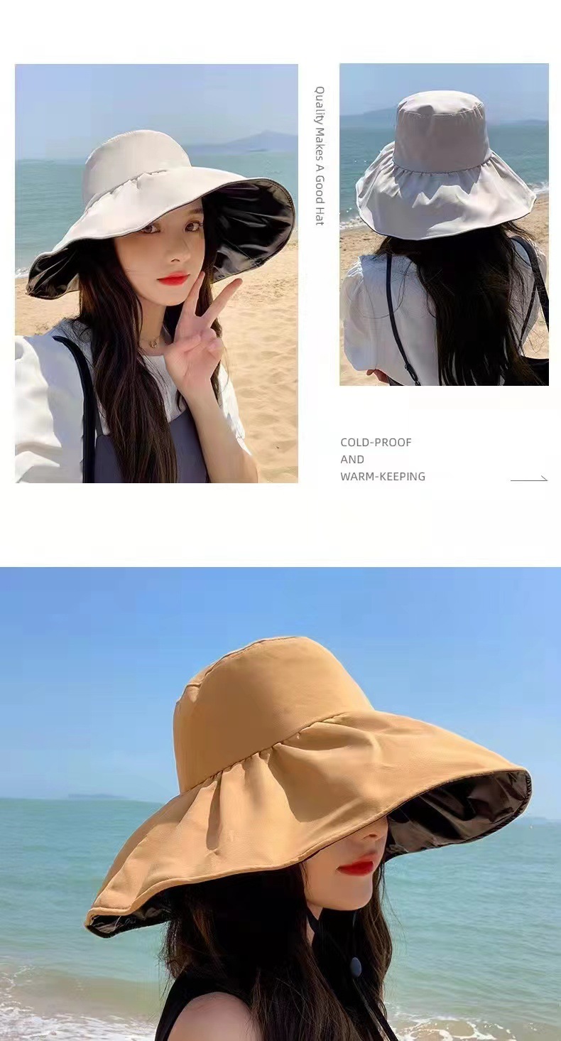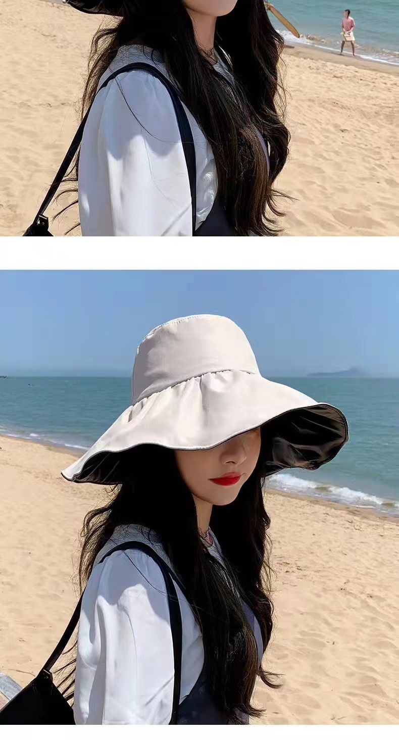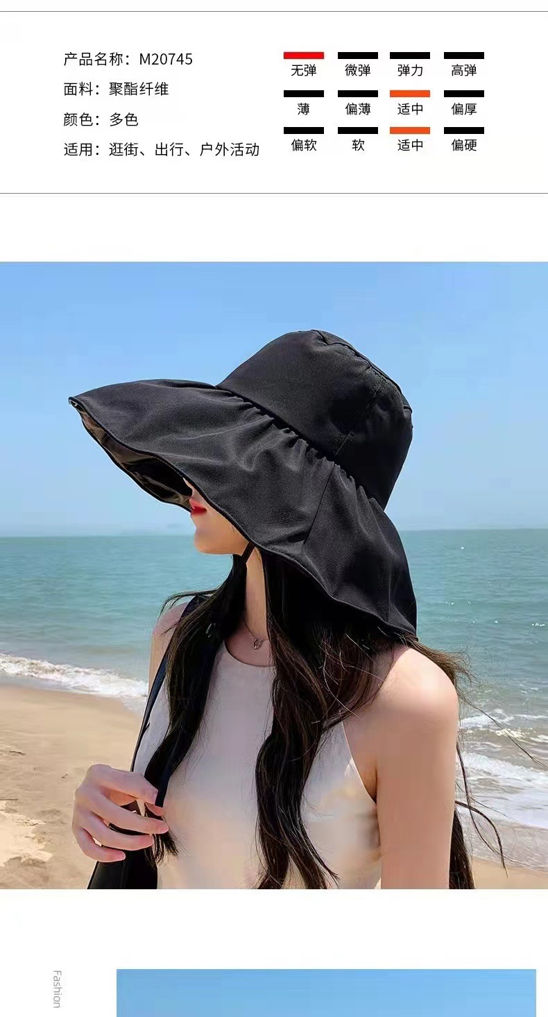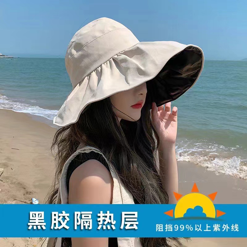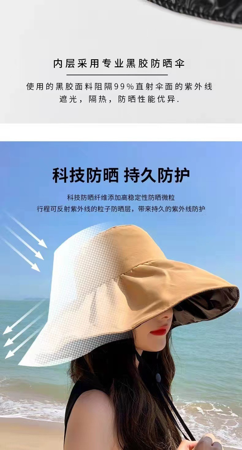 일본 검은 접착제 빈 탑 선 스크린 모자 어린이 여름 큰 Eave 안티 UV 태양 모자 접이식 어부 모자 봄과 가을