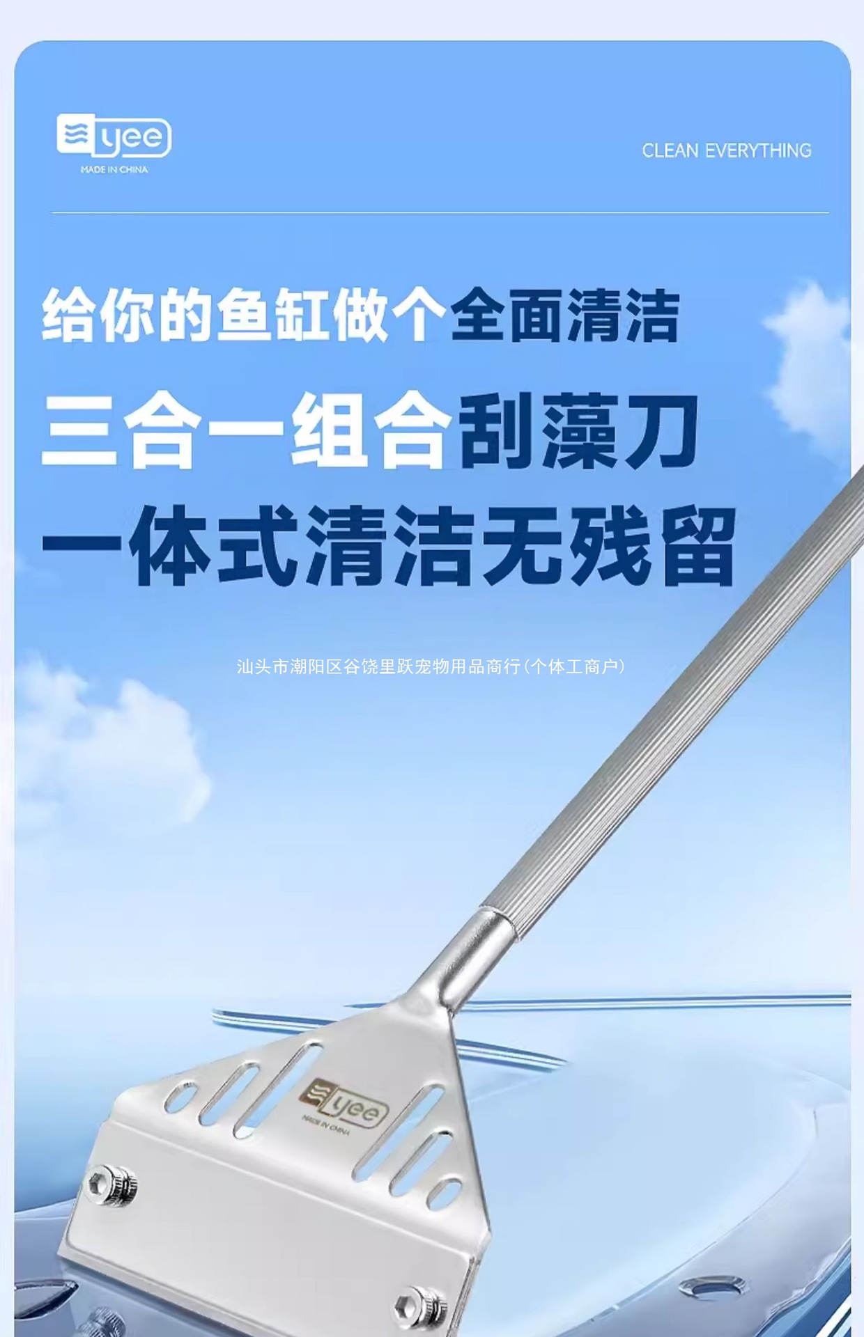 Yee 수조 조류 스크레이퍼, 수생 식물 청소 도구, 조류 제거 및 청소, 담수 및 해수 범용 청소, 사각지대 없음 Shen Yue Pet