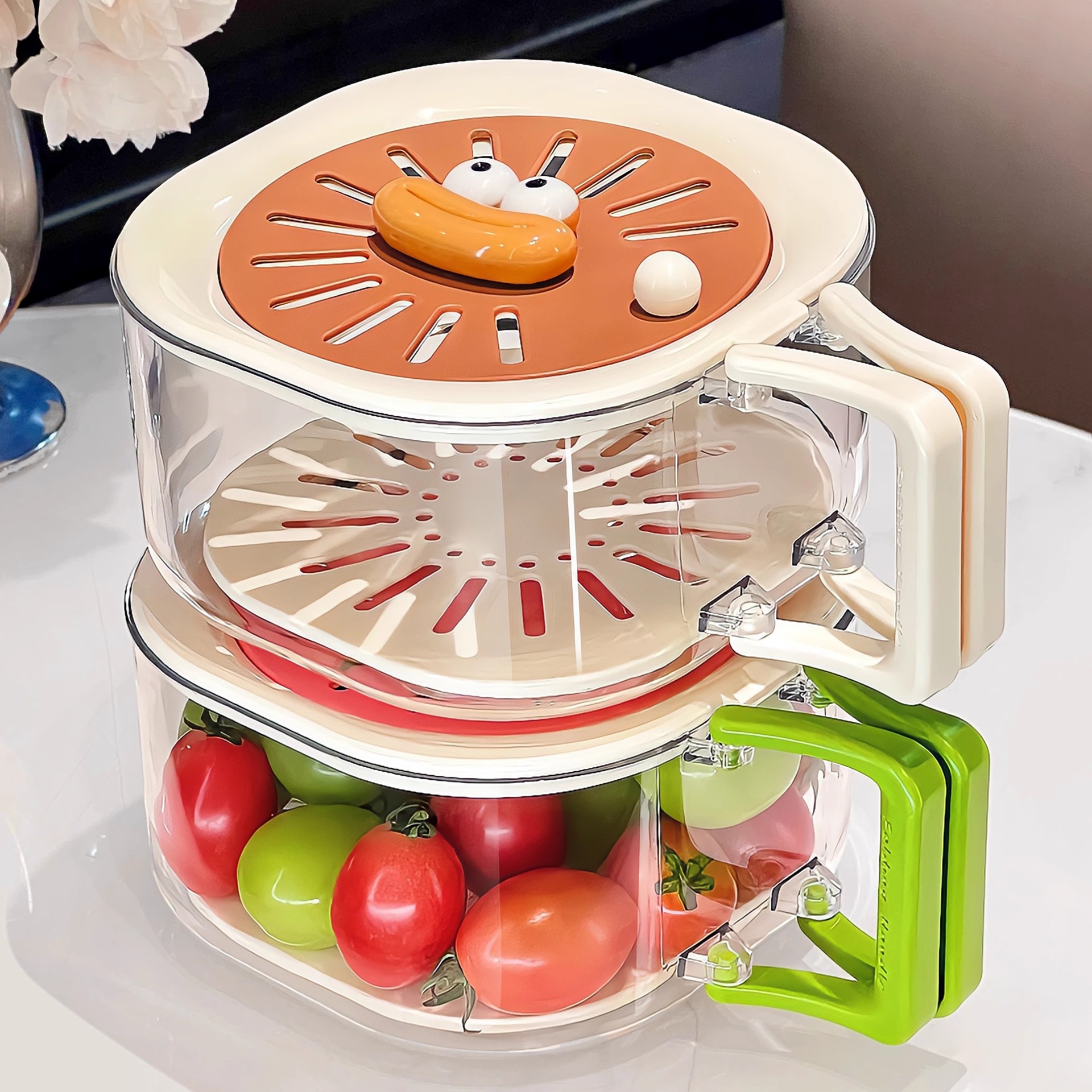 야채 세척 분지 더블 레이어 세척 과일 인공물 배수 바구니 가정용 주방 용품 새로운 거실 2 대 1 작은 과일 접시스토어 가기