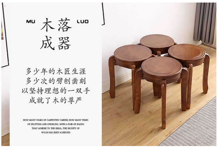 단단한 나무 둥근 의자 가정용 의자 현대 간단한 레스토랑 나무 의자 중국 스타일 쌓인 쌓인 의자 거실 의자스토어 가기
