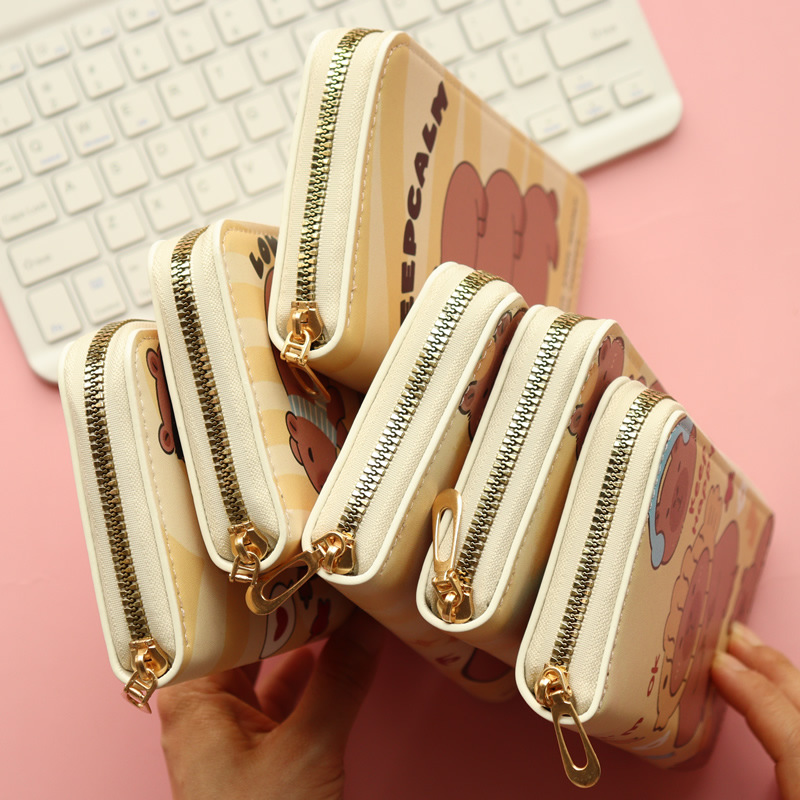 카피발라 귀여운 수달 여성 학생 어린이용 긴 지퍼 지갑 대용량 동전 지갑 다중 카드 슬롯스토어 가기
