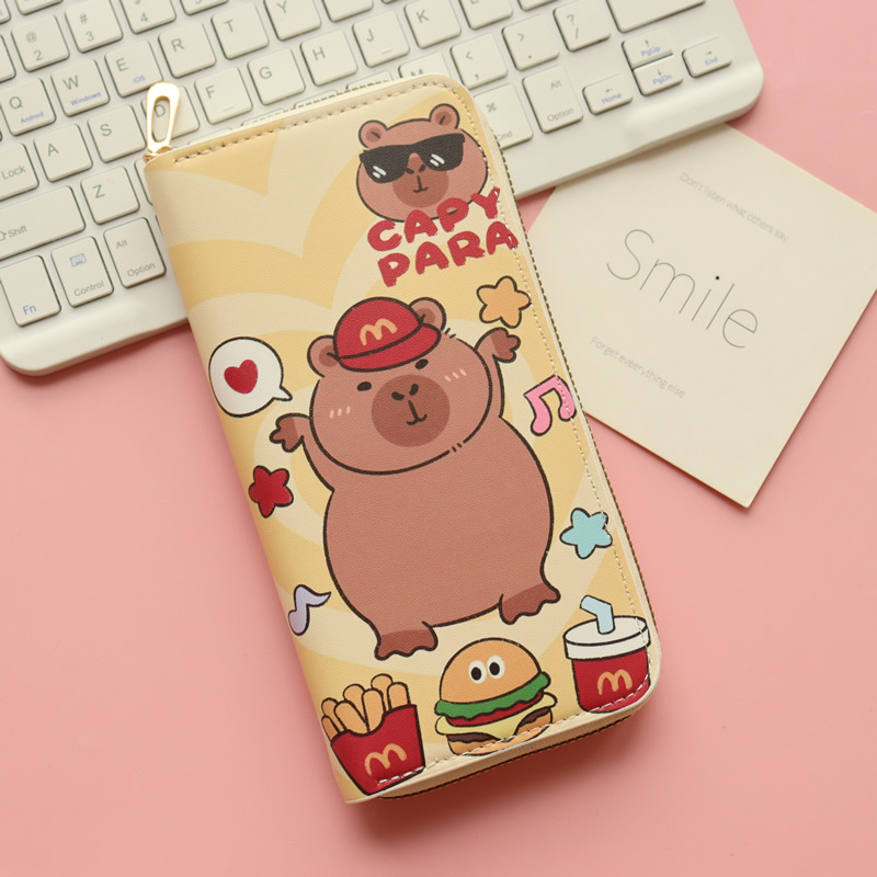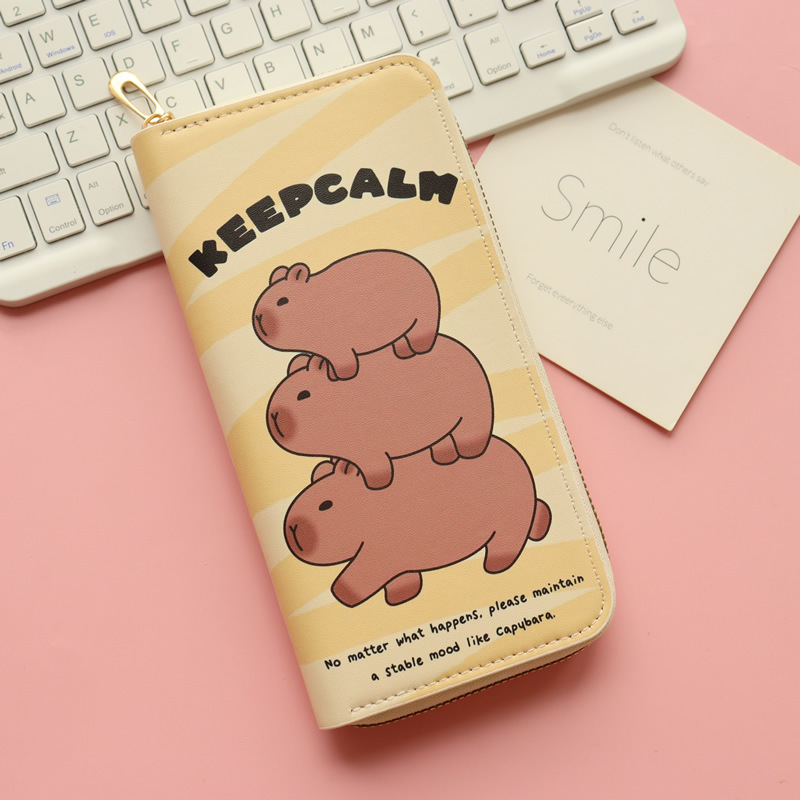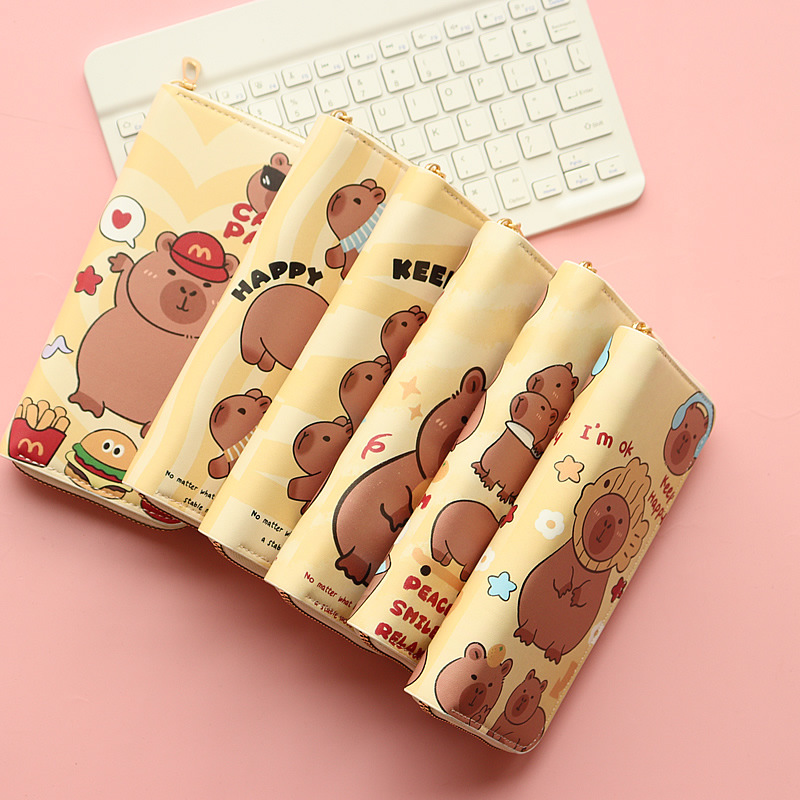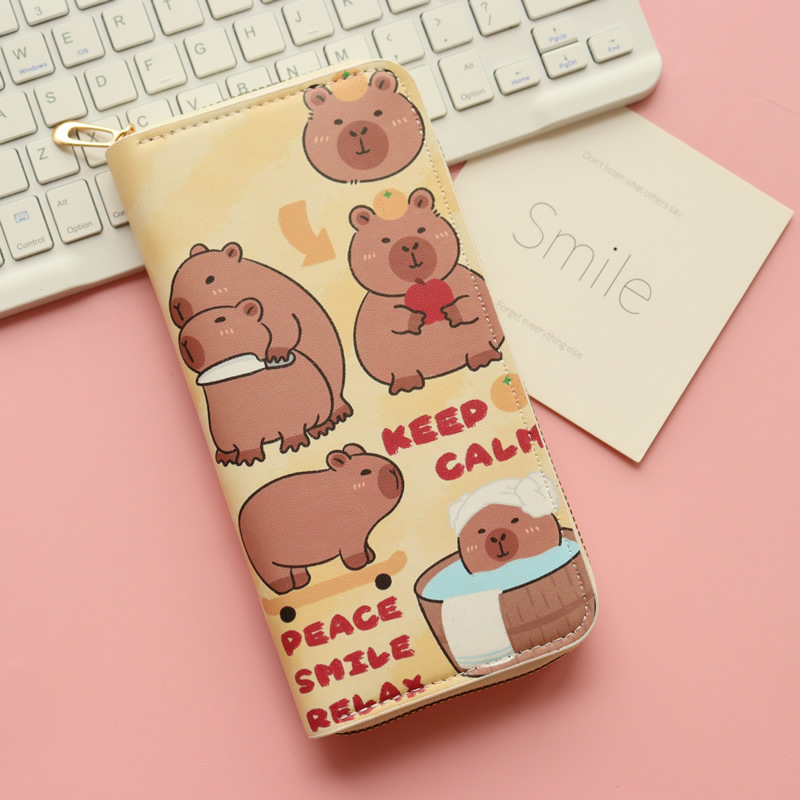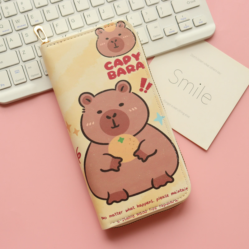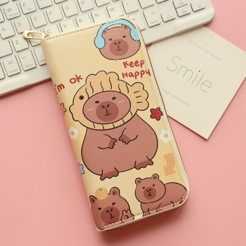 카피발라 귀여운 수달 여성 학생 어린이용 긴 지퍼 지갑 대용량 동전 지갑 다중 카드 슬롯