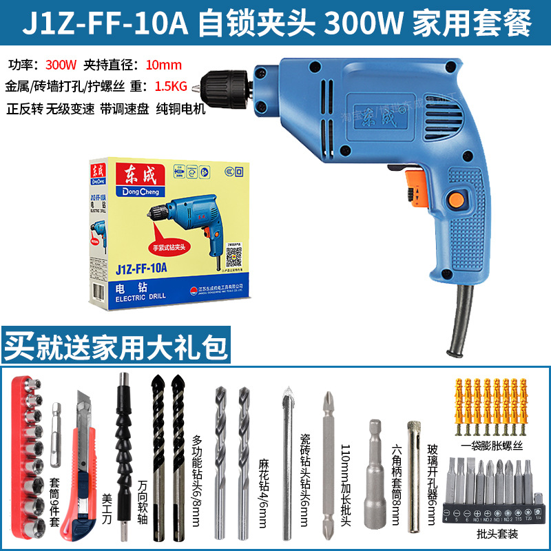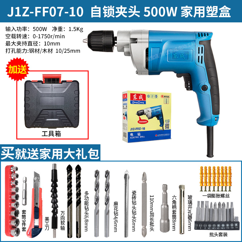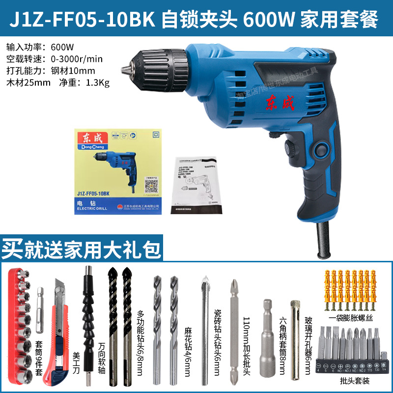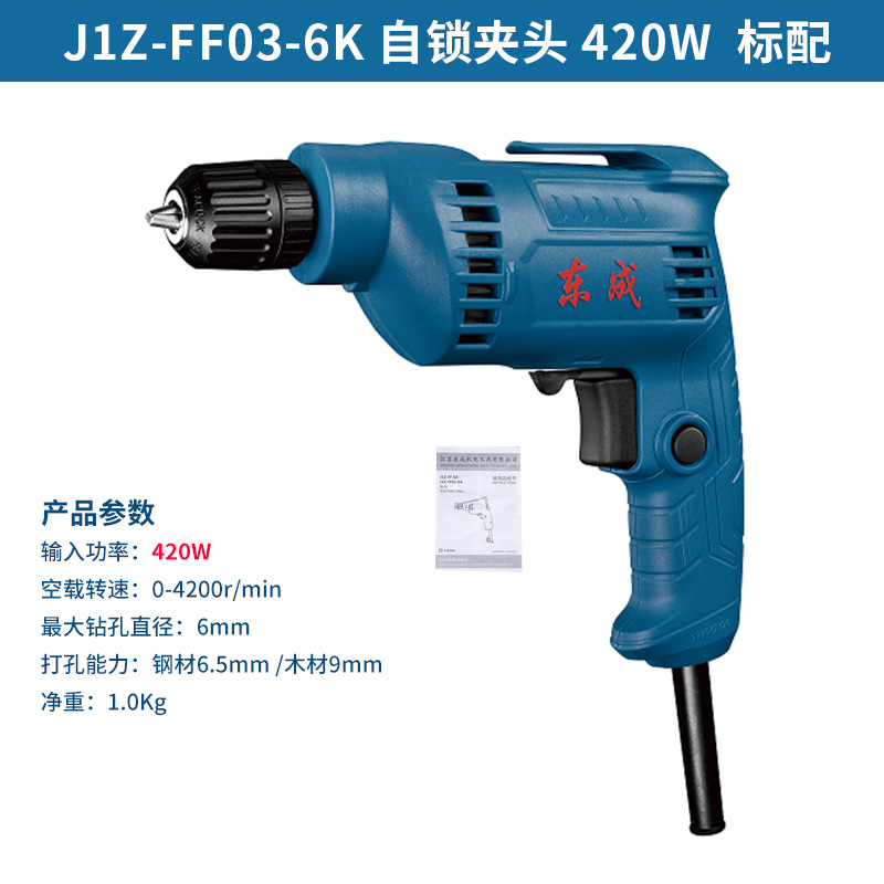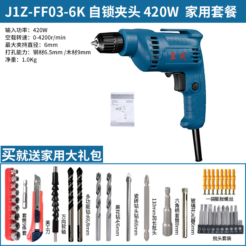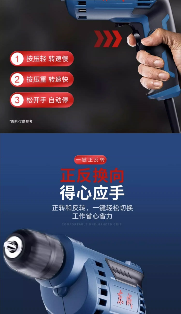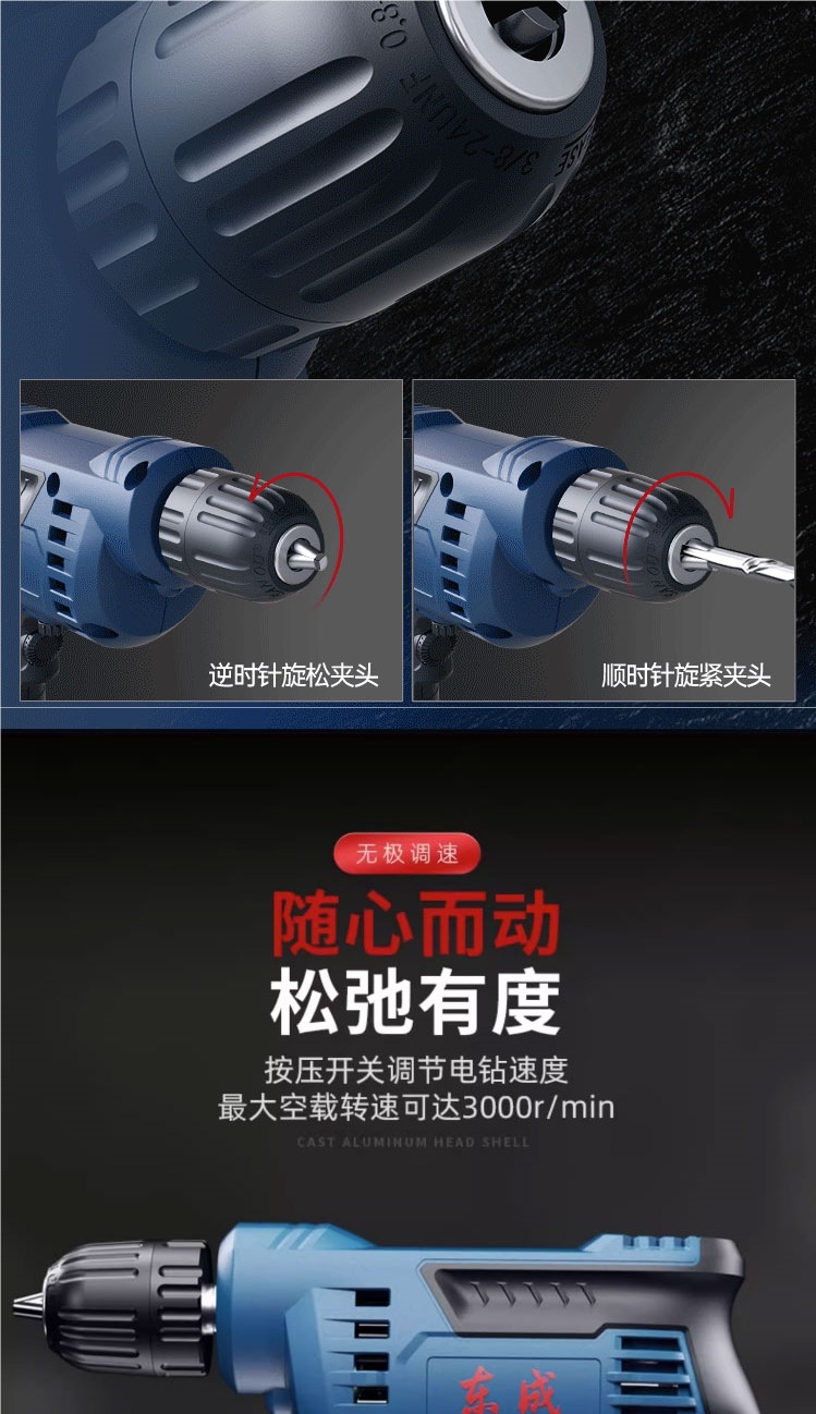 Dongcheng 핸드 드릴 순수 구리 고출력 권총 드릴 전기 드라이버 가정용 다기능 220V 와이어 핸드 드릴