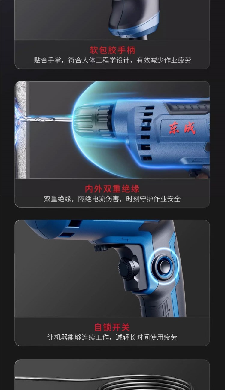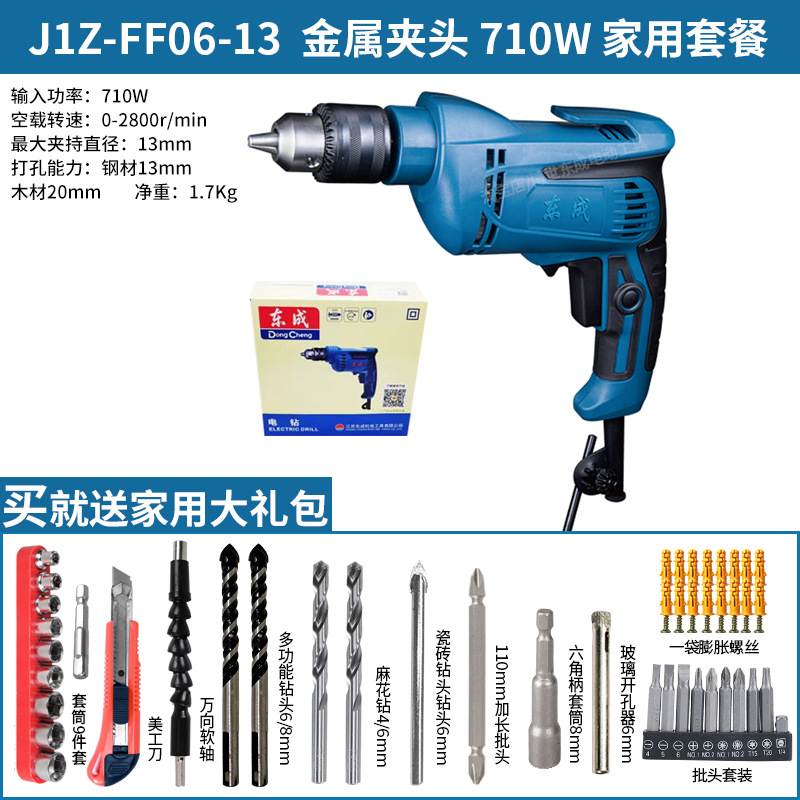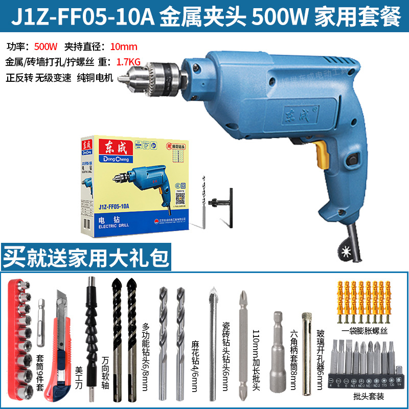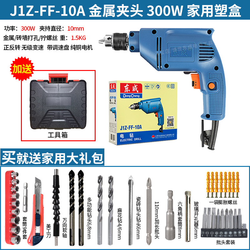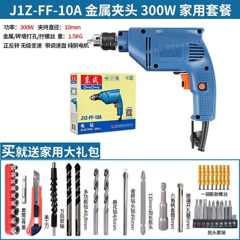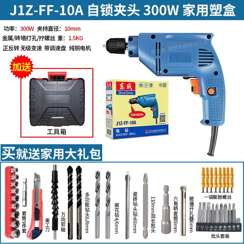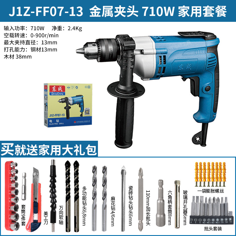 Dongcheng 핸드 드릴 순수 구리 고출력 권총 드릴 전기 드라이버 가정용 다기능 220V 와이어 핸드 드릴