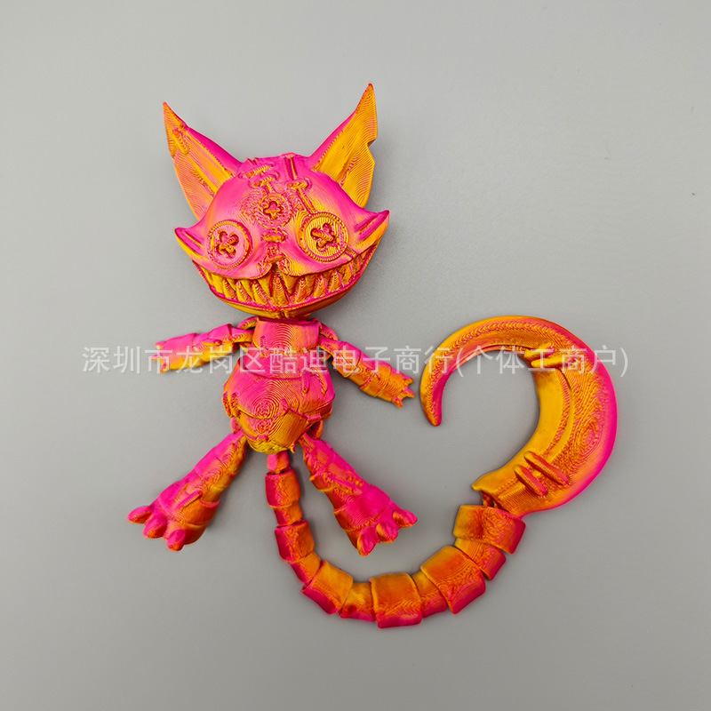 3D 프린트된 긴 꼬리 악마 고양이 전신 관절이 움직일 수 있는 국경 간 감압 장식 장식품 어린이 생일 선물