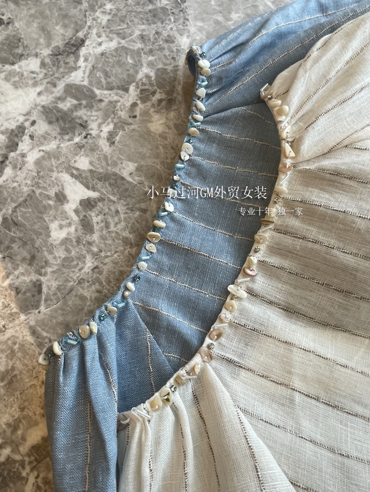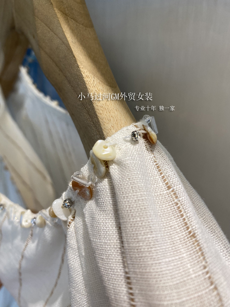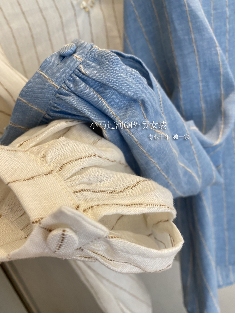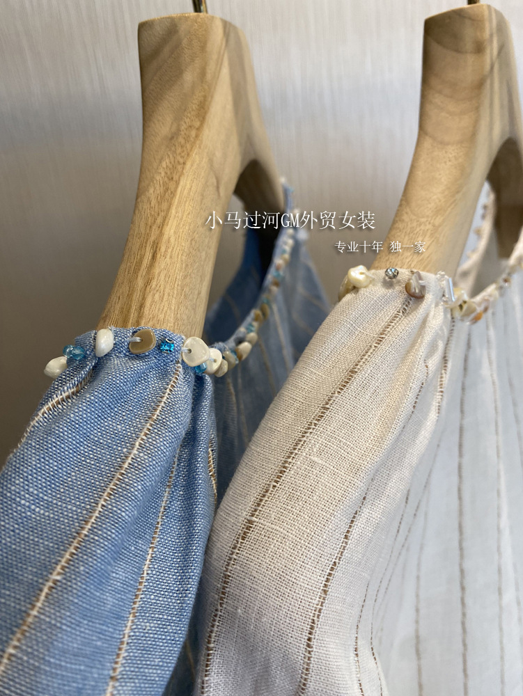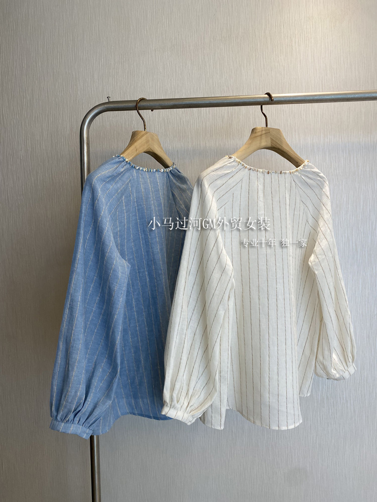 화난 푸시!! 상체는 매우 리프트 기질, 차가운 느낌 느슨한 린넨 스트링 쉘 비즈 V 칼라 수직 스트립 셔츠 여성 봄입니다스토어 가기