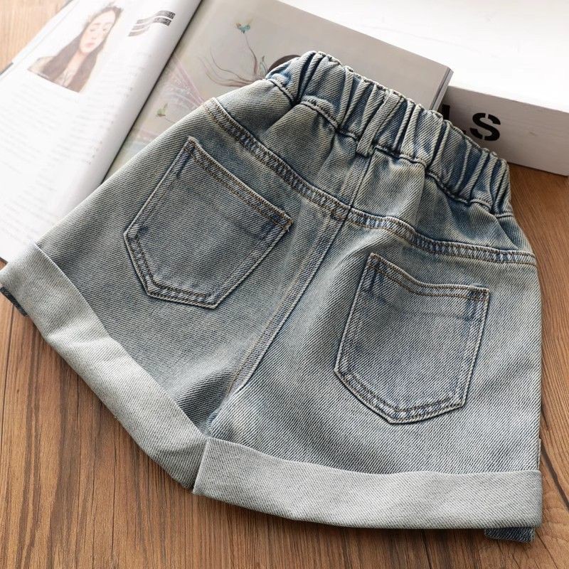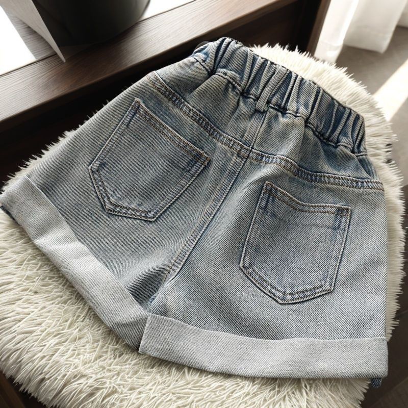 소녀 서양식 Curled 데님 반바지 2025 여름 새로운 어린이 얇은 부드러운 유행 서양식 데님 반바지스토어 가기