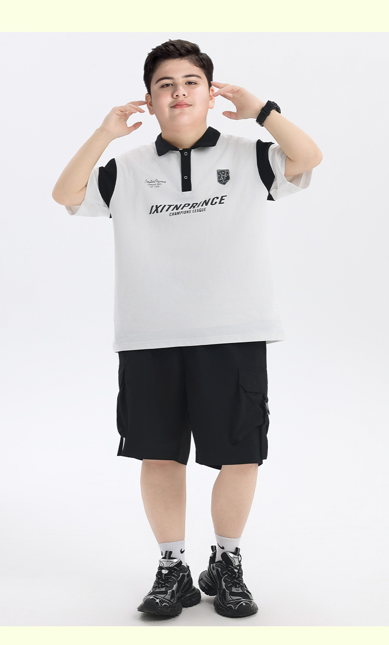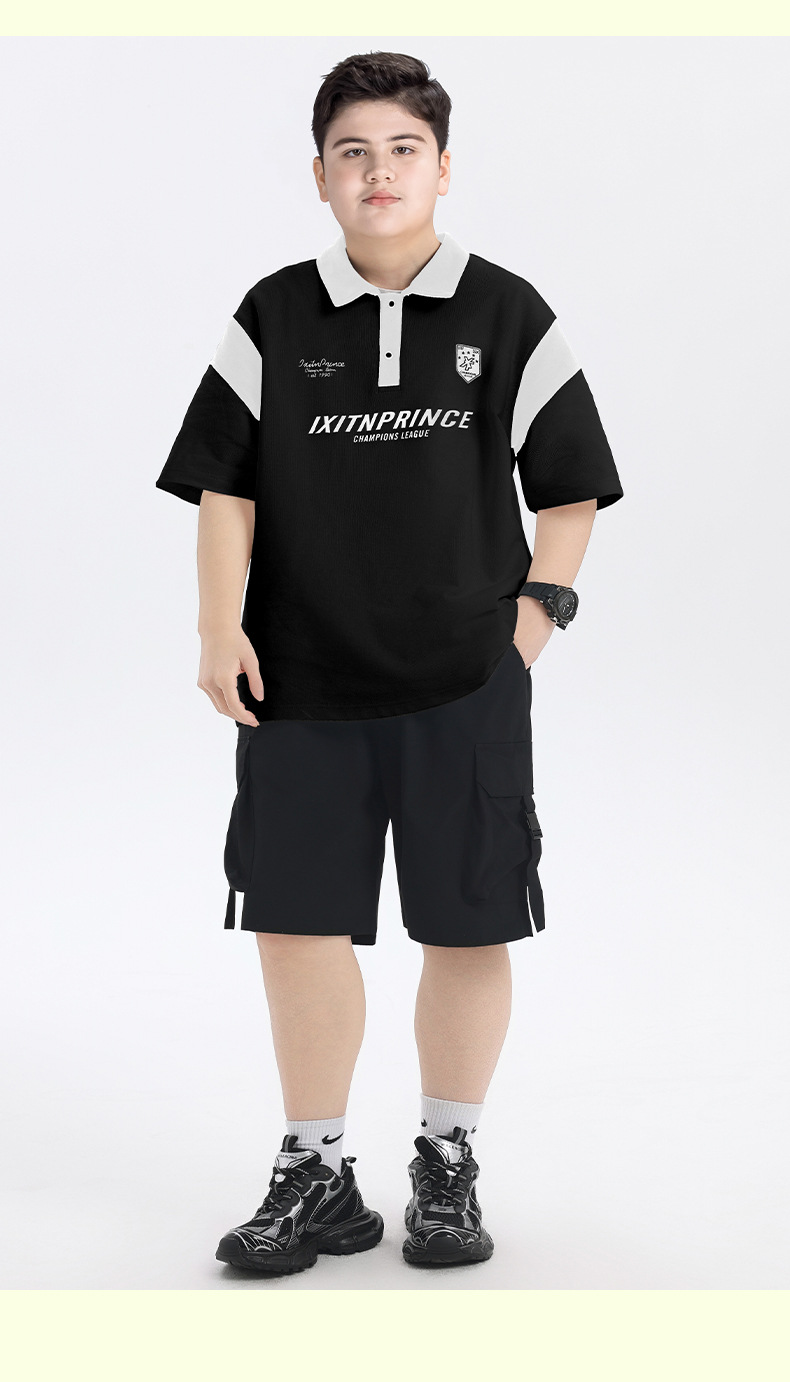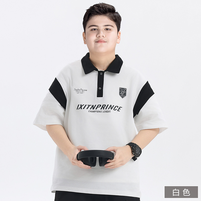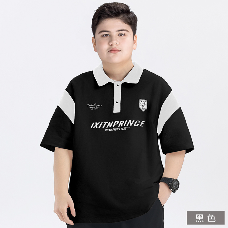 통통한 아동복 소년 반팔 폴로 셔츠 플러스 비료 플러스 대형 여름 2025 신형 중학교 어린이 티셔츠 중학생 티셔츠스토어 가기