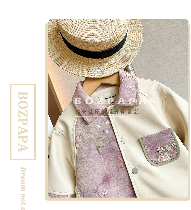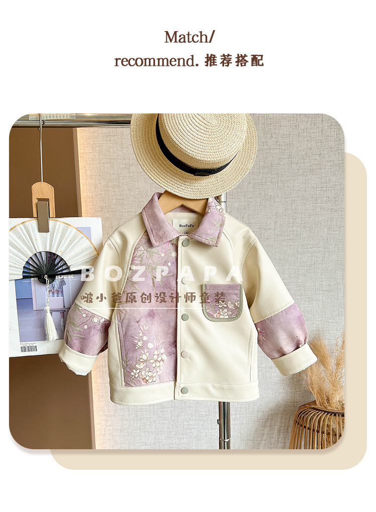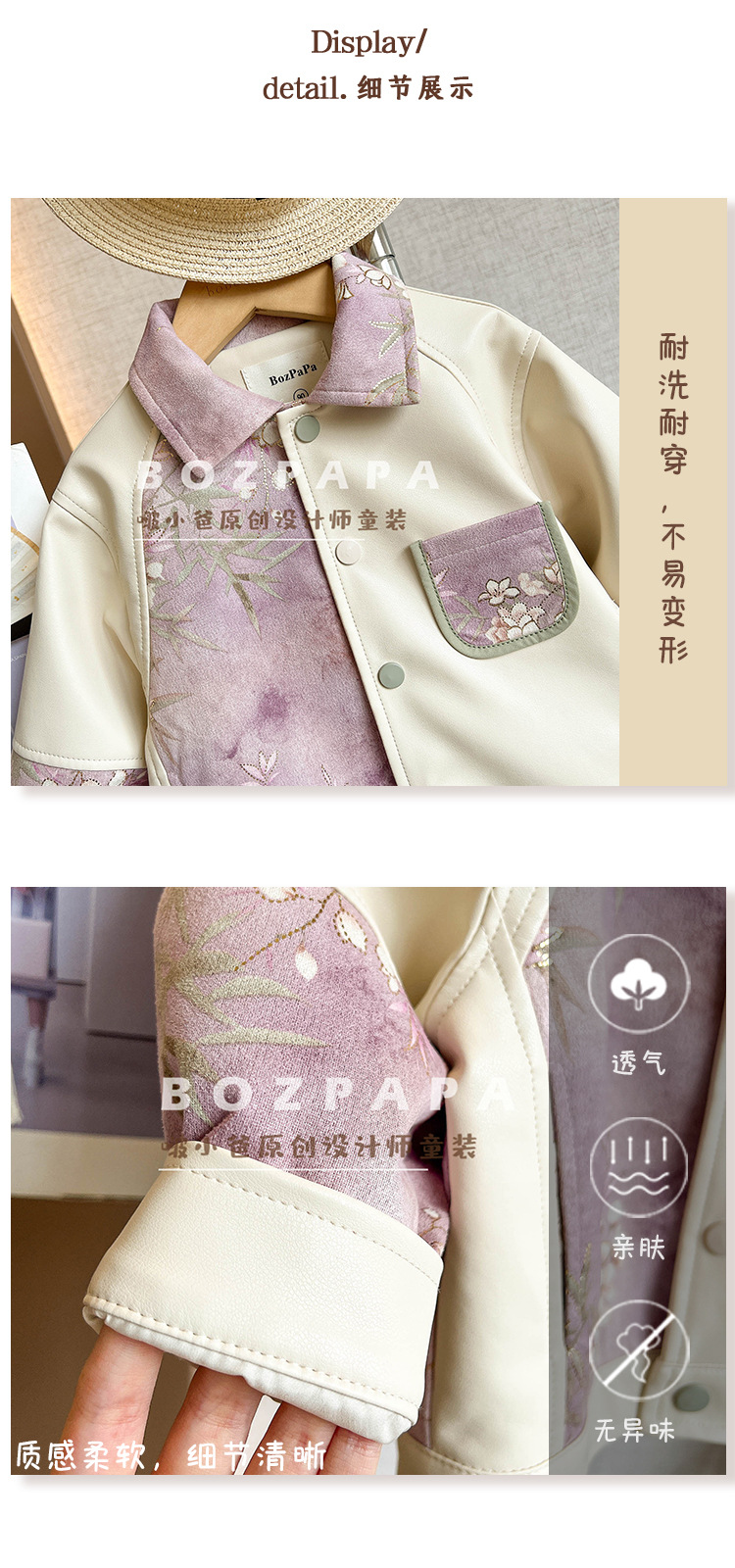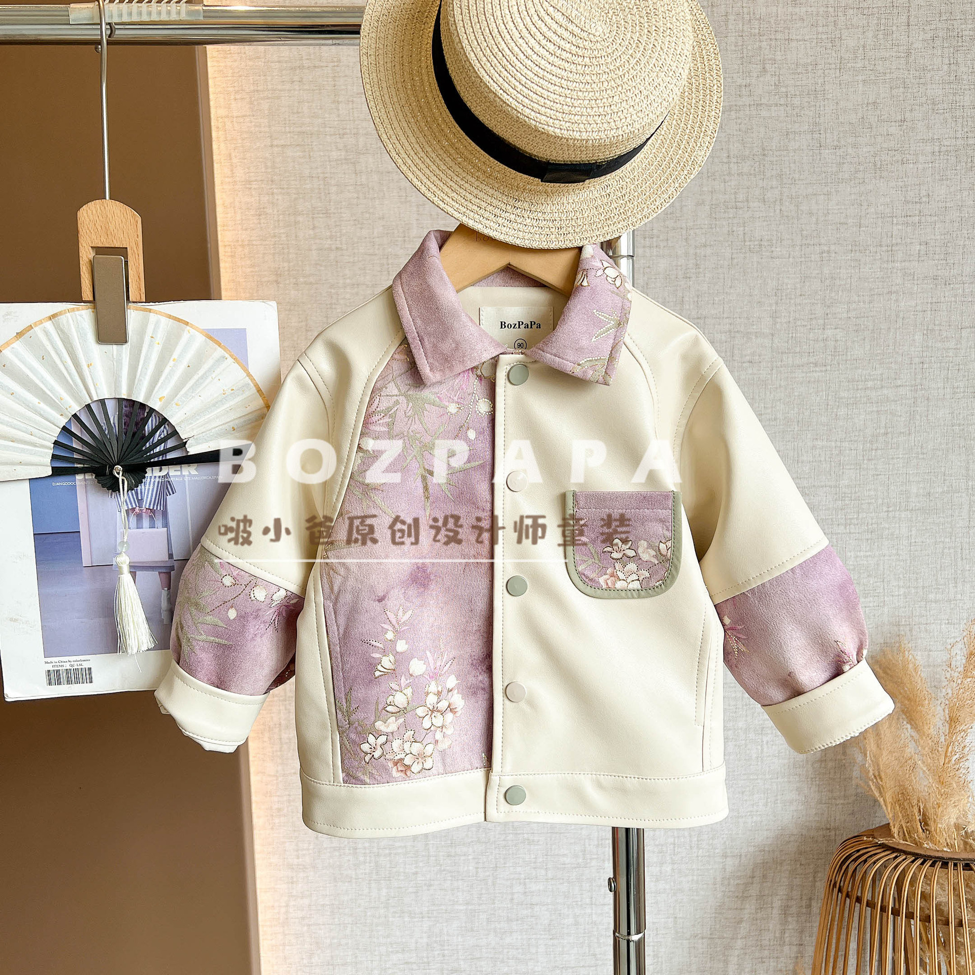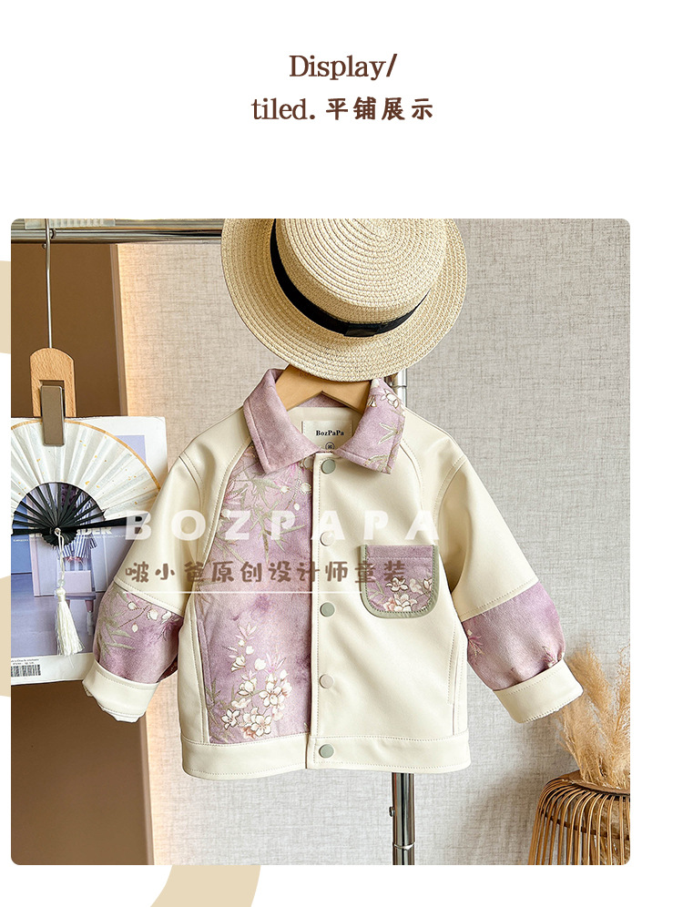 2025 봄 새 소년의 새로운 중국 스타일 스플 라이스 디자인 옷깃 가죽 자켓 어린이 베이비 패션 다목적 자켓스토어 가기