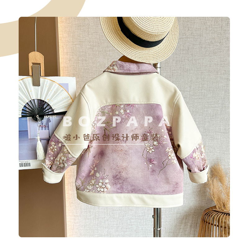 2025 봄 새 소년의 새로운 중국 스타일 스플 라이스 디자인 옷깃 가죽 자켓 어린이 베이비 패션 다목적 자켓