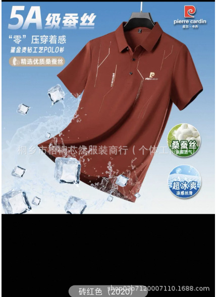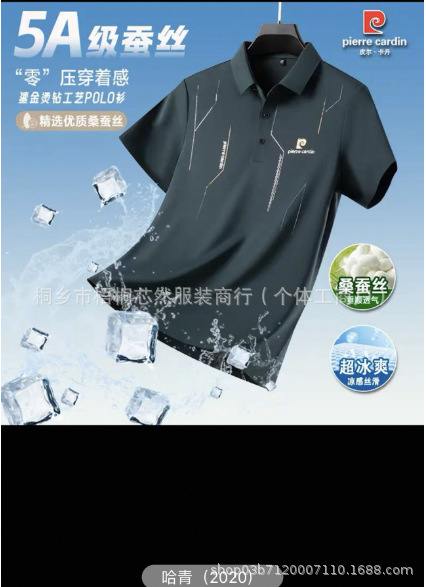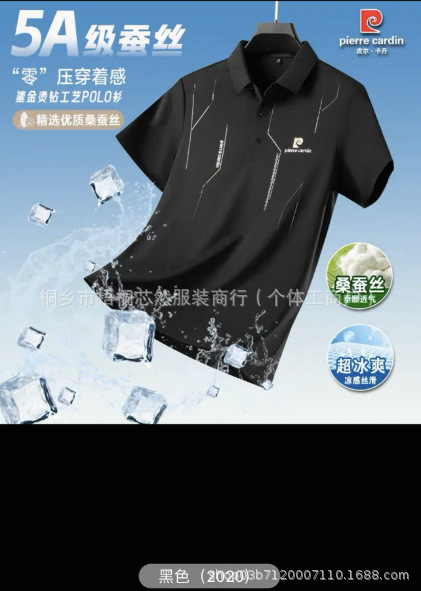 2025 남자 뉴 뽕나무 실크 반소매 폴로 셔츠 여름 얇은 라셀 아이스 실크 반소매 티셔츠 탑스토어 가기