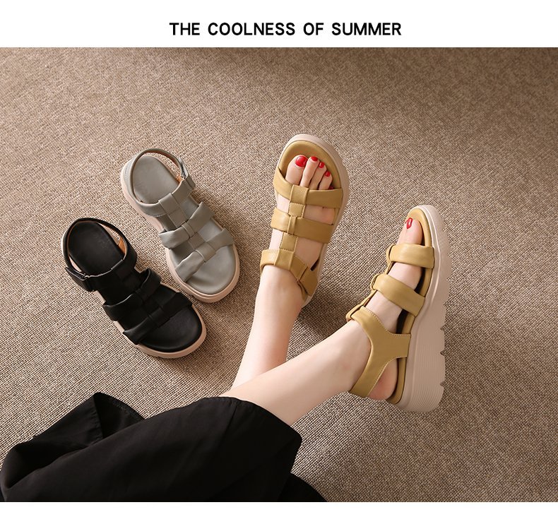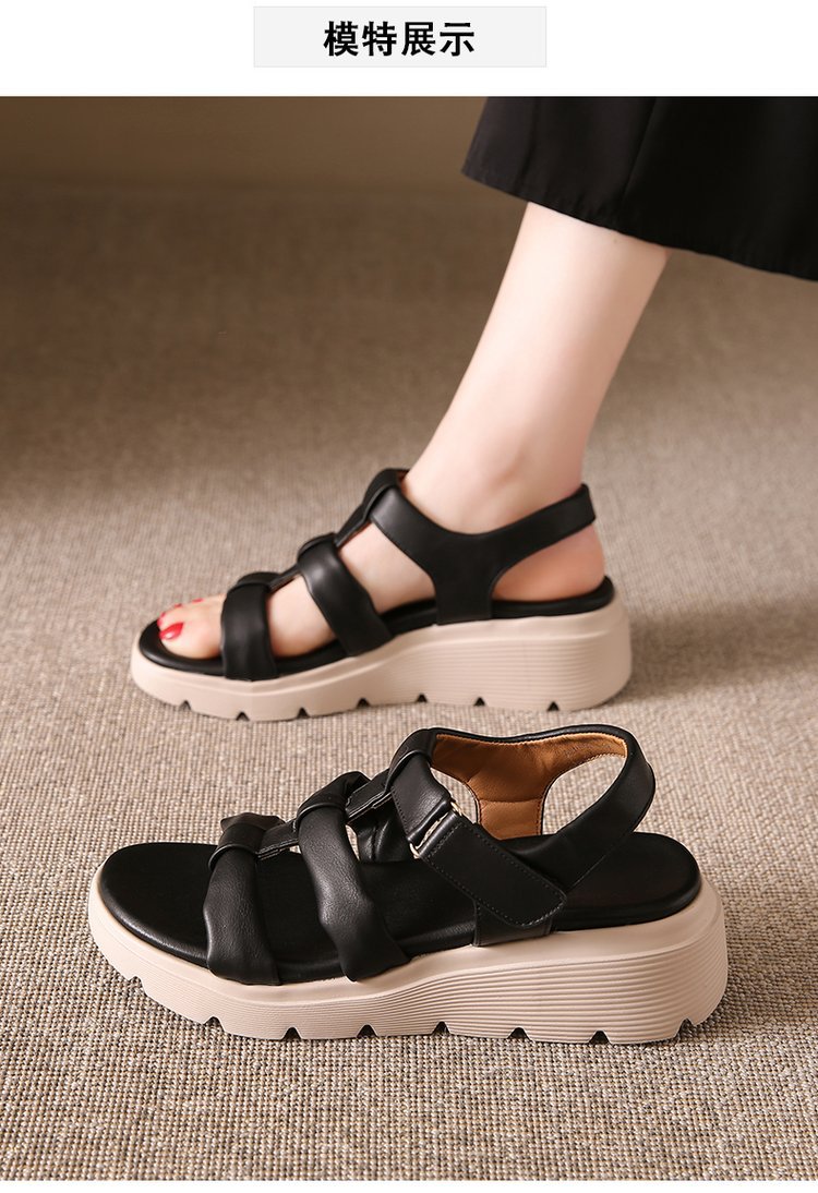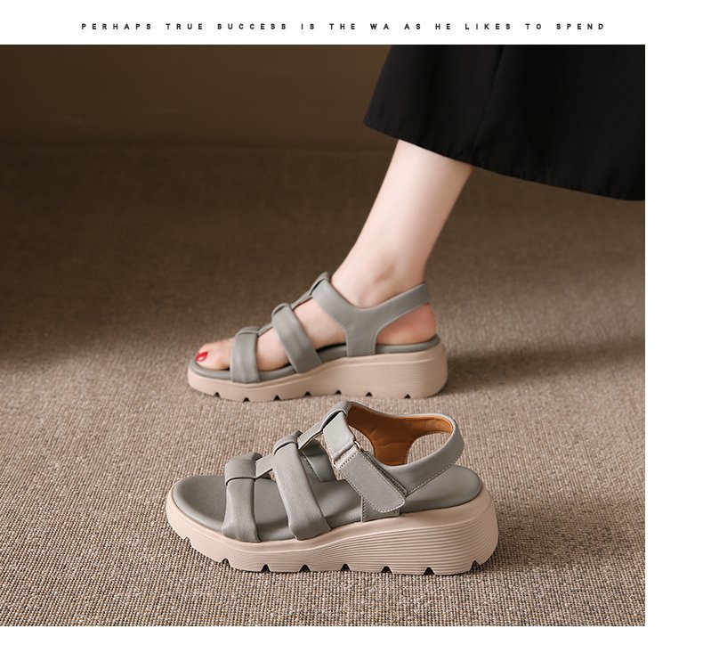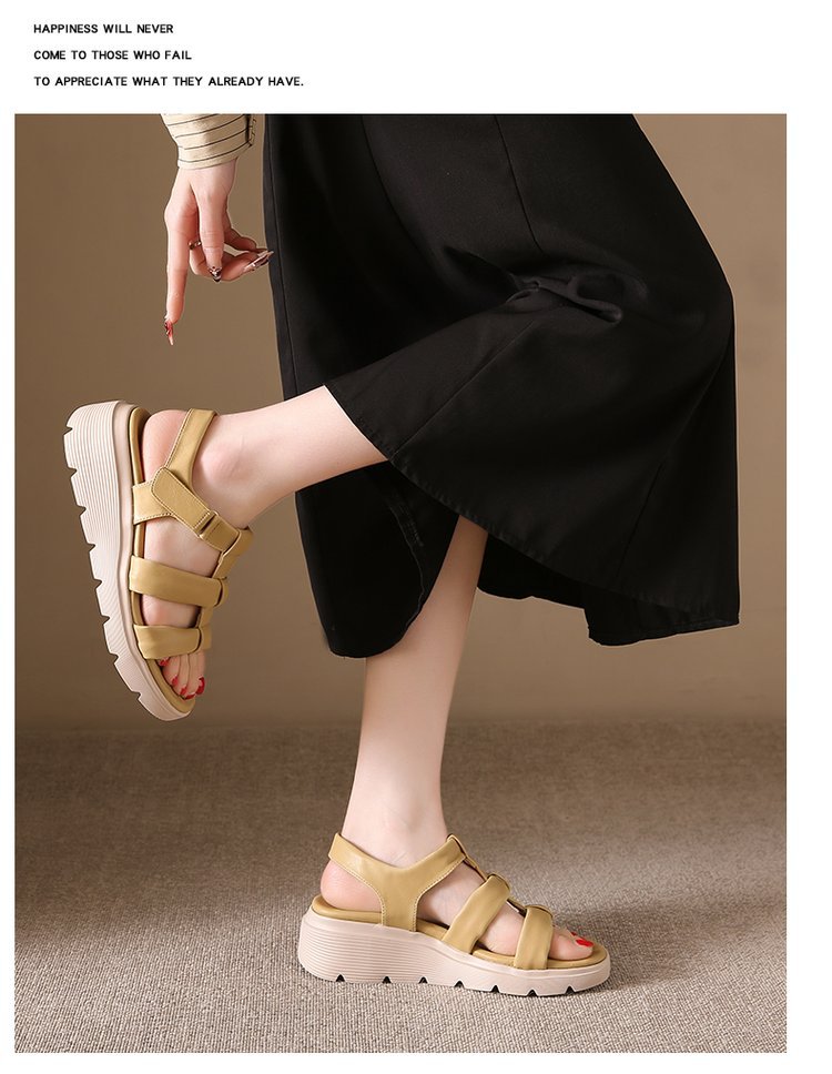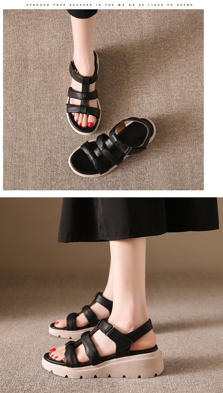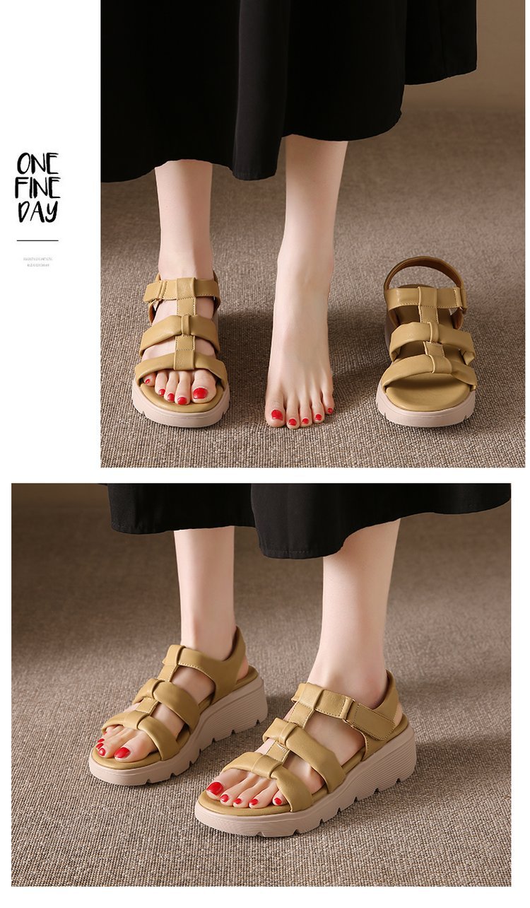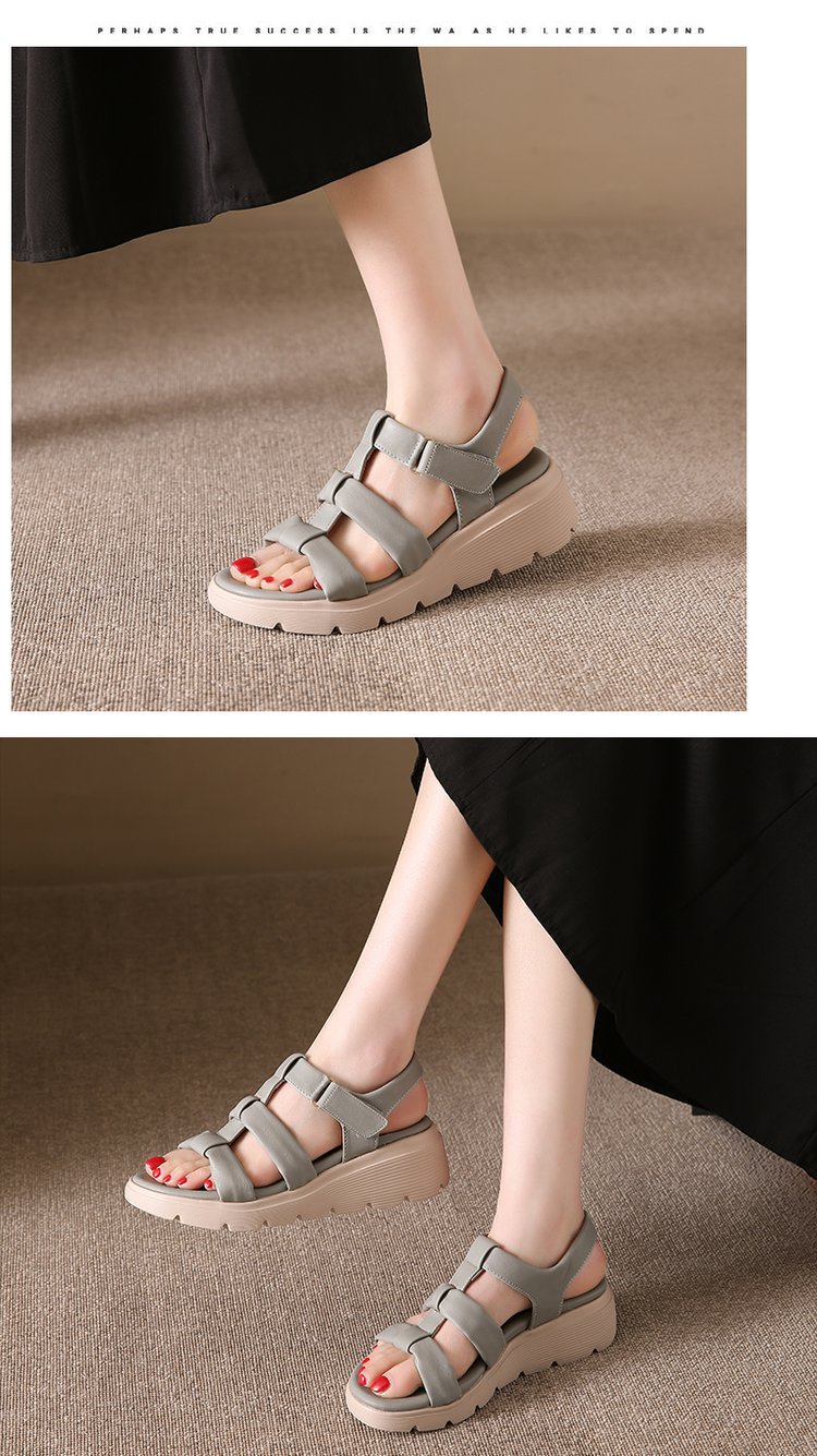 세련된 로마 스포츠 샌들 여성 2025 새로운 여름 두꺼운 단일 경량 편안한 웨지 플러스 사이즈 비치 샌들