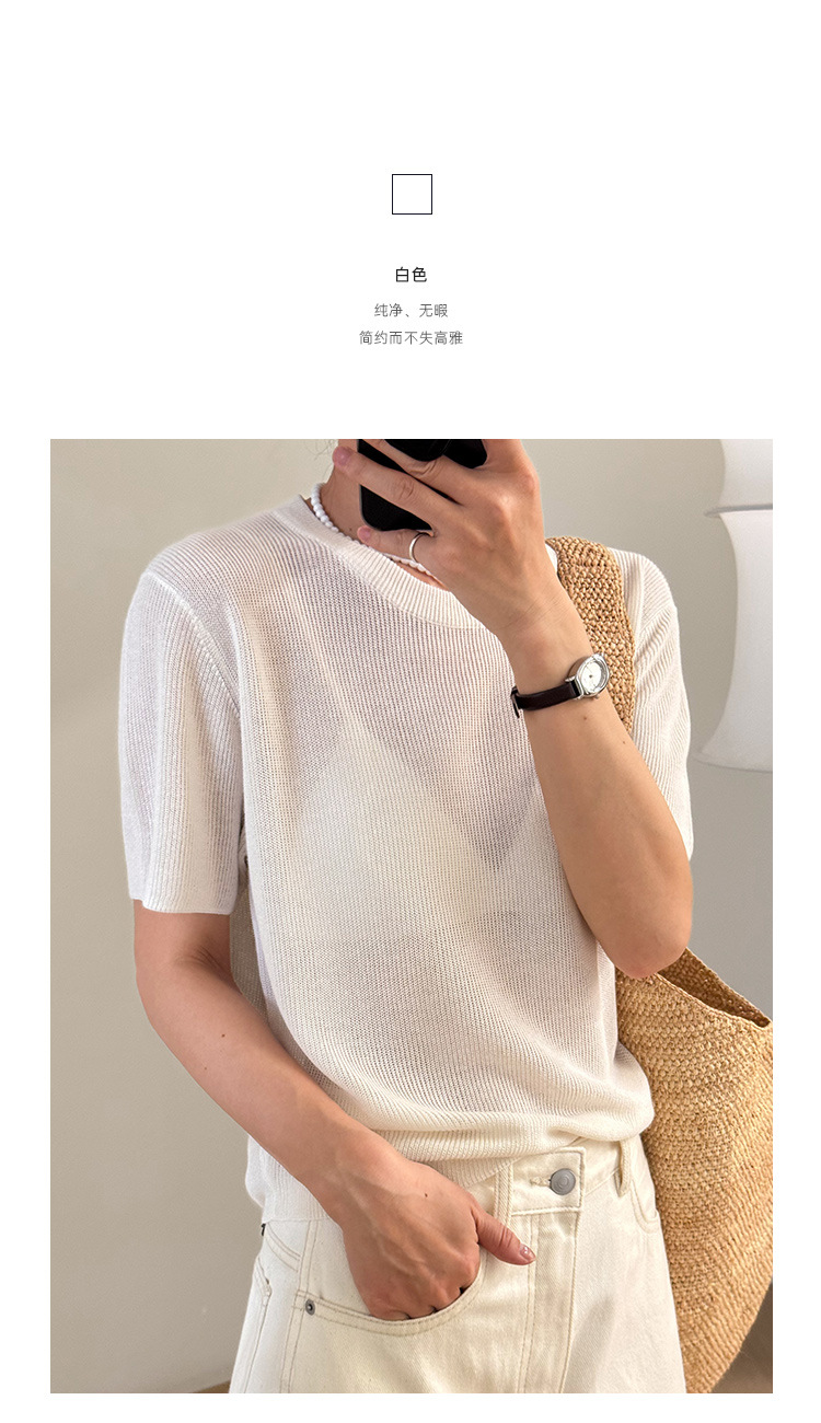 CLEAN SPACE 부드러운 피부 친화적 인 통기성 티셔츠 여성 2025 13 라인 새로운 한국 니트 반팔 55150스토어 가기