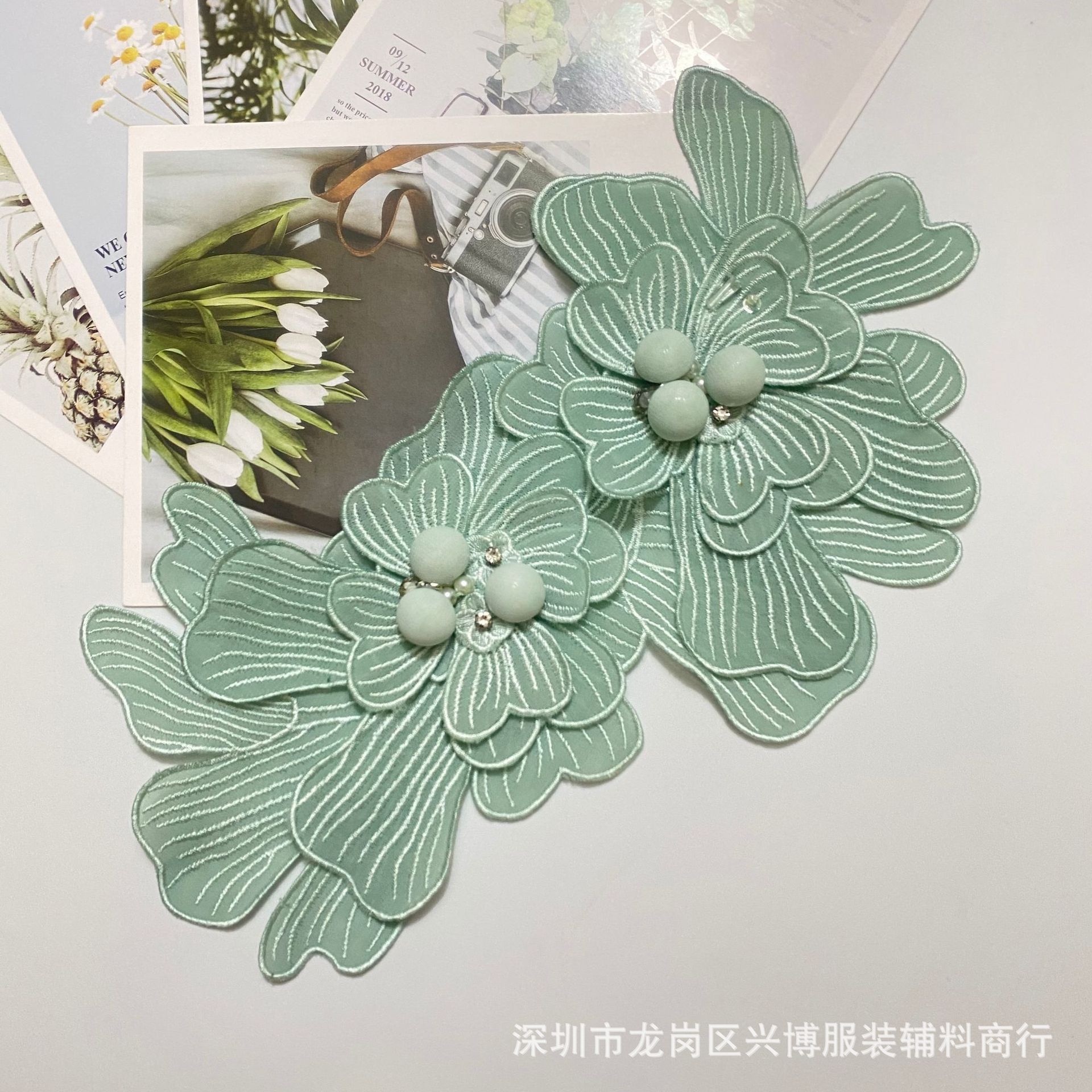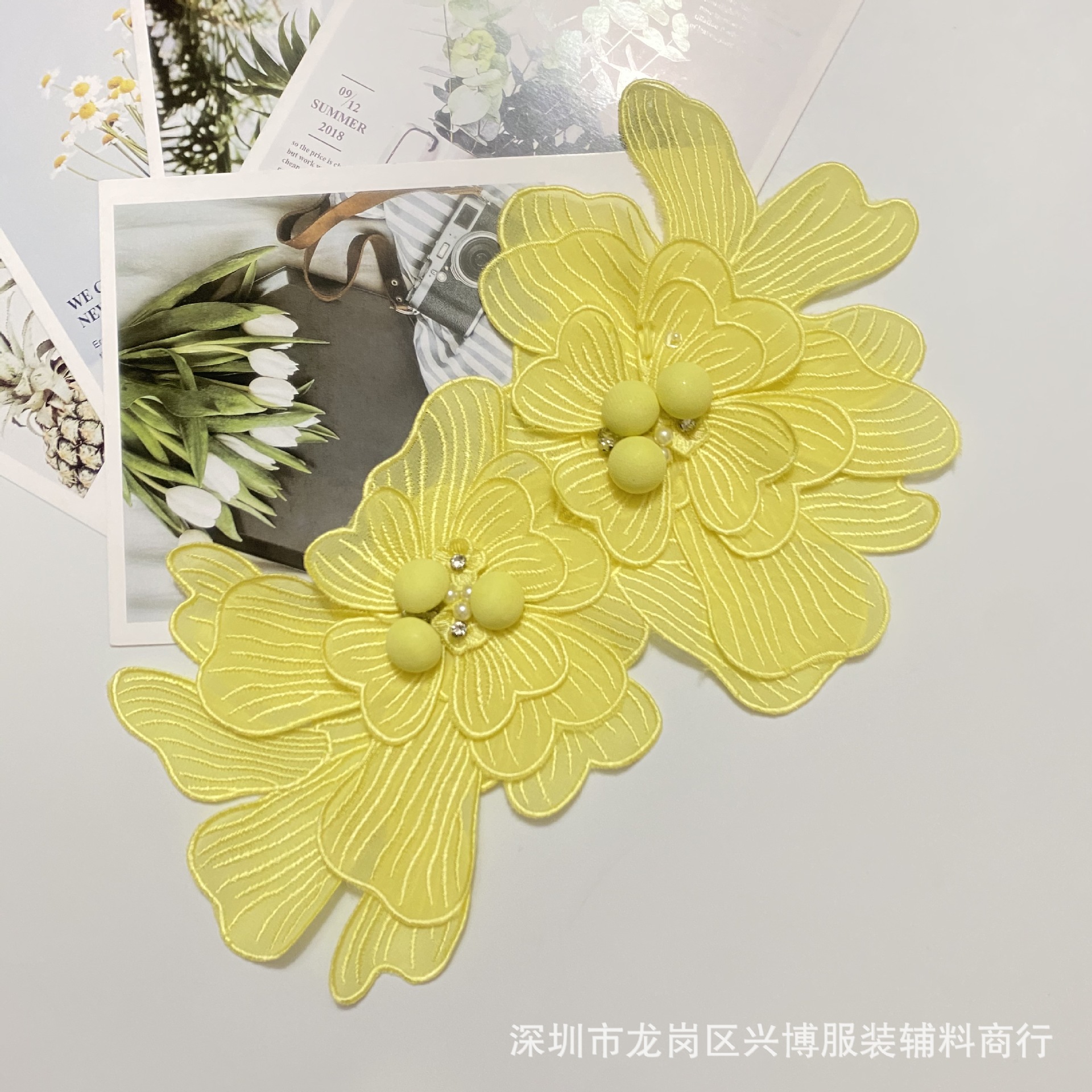 새로운 다층 쉬폰 3 차원 꽃 DIY 천 네일 비드 자수 여성 원피스 웨딩 원피스 티셔츠 액세서리