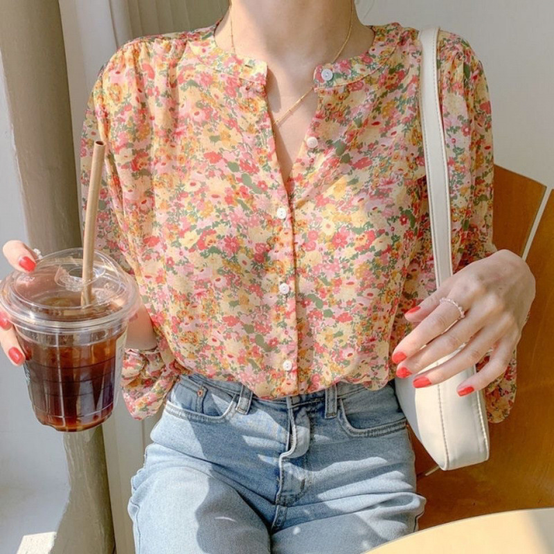 여성을 위한 꽃무늬 쉬폰 탑, 2025년 초가을 새로운 스타일의 셔츠, 긴팔 슈퍼 요정 패션 여성스러운 기질 셔츠스토어 가기