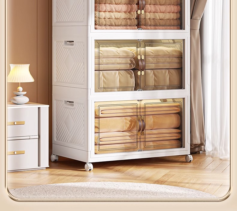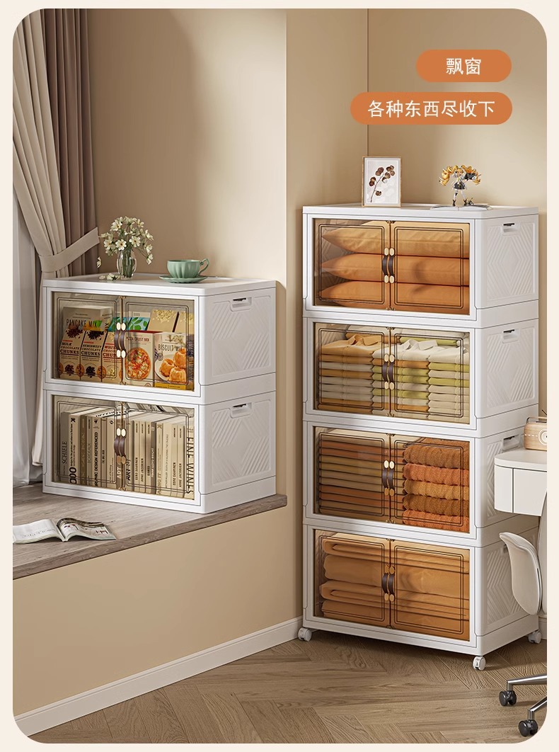 접이식 저장 상자 홈 풀리 스낵 캐비닛 설치없는 다층 옷 깔끔한 상자가있는 두꺼운 장난감 보관 캐비닛