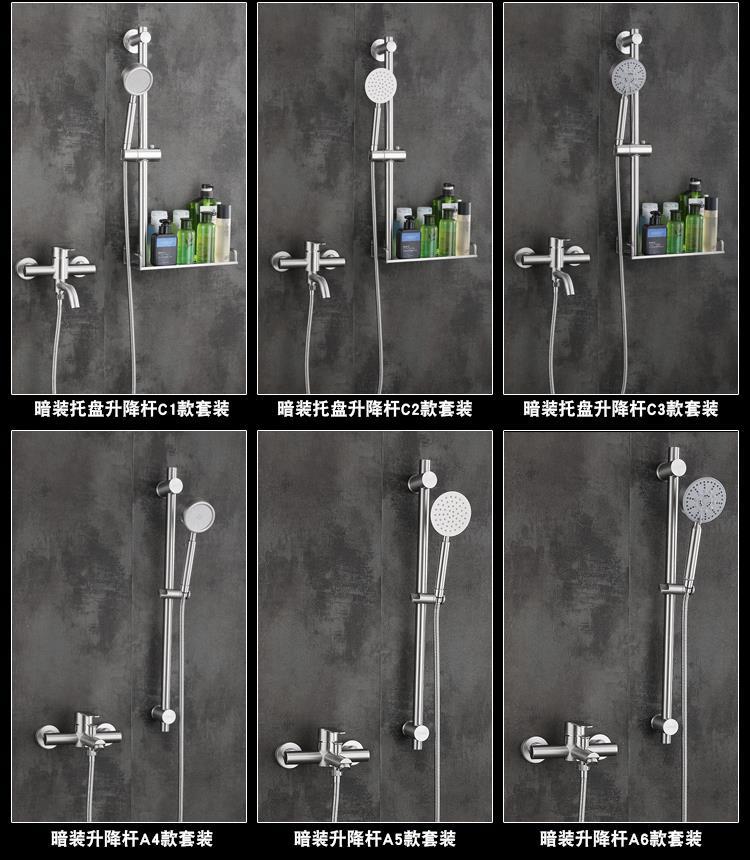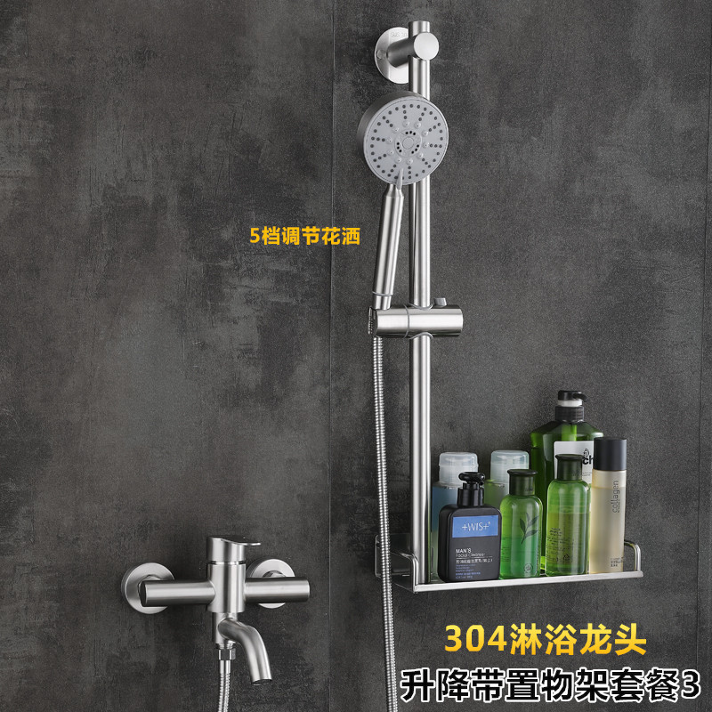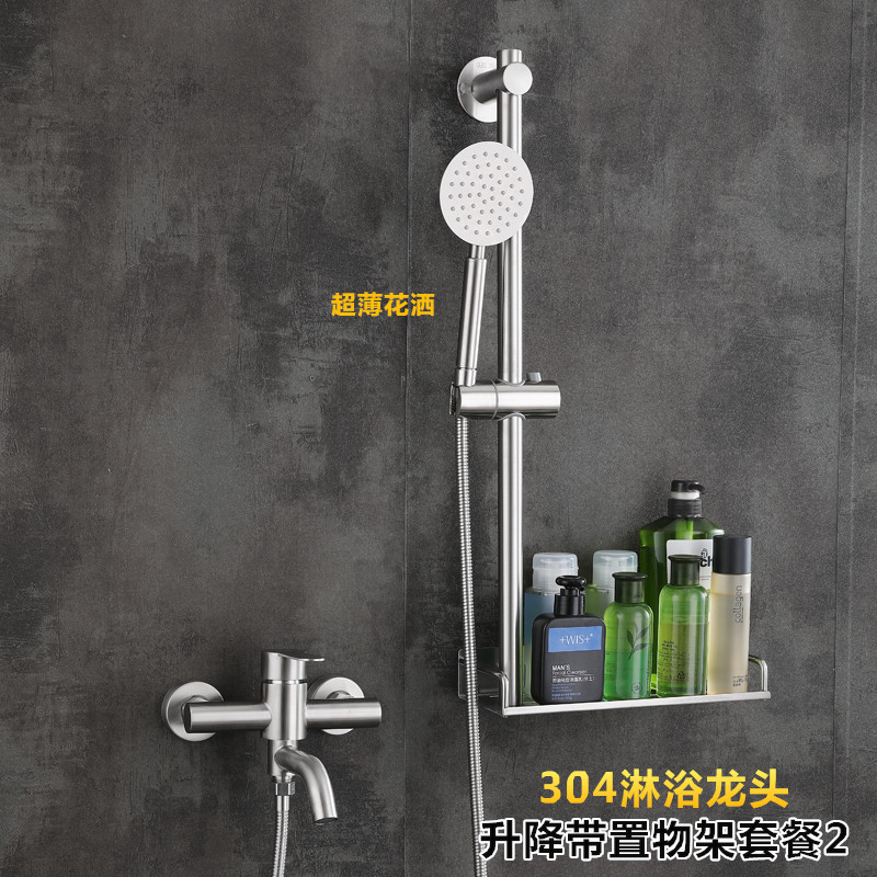 304 스테인레스 스틸 샤워 헤드 욕실 표면 장착 브래킷 리프팅 로드 샤워 헤드 세트 간단한 가정용스토어 가기
