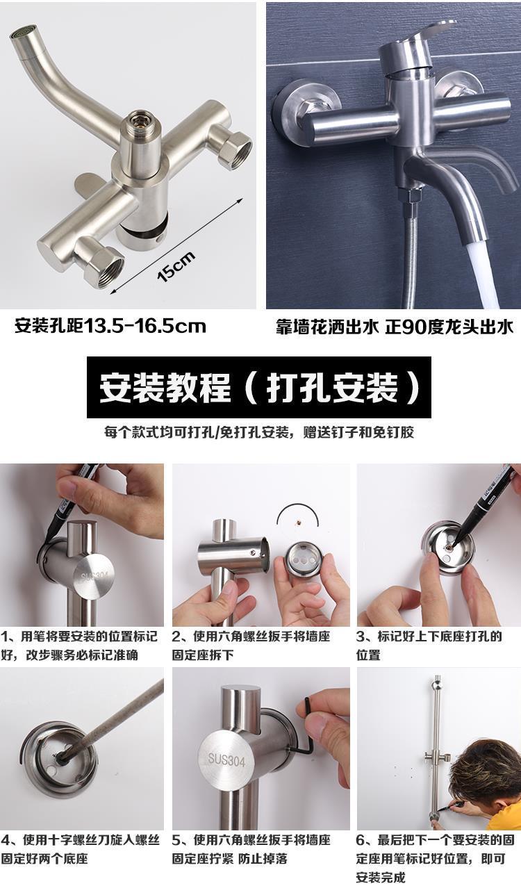펀치없는 304 샤워 헤드 브래킷 리프팅 레버 욕실 레인 샤워 헤드 고정 조절 가능한 샤워 베이스 레버 액세서리스토어 가기