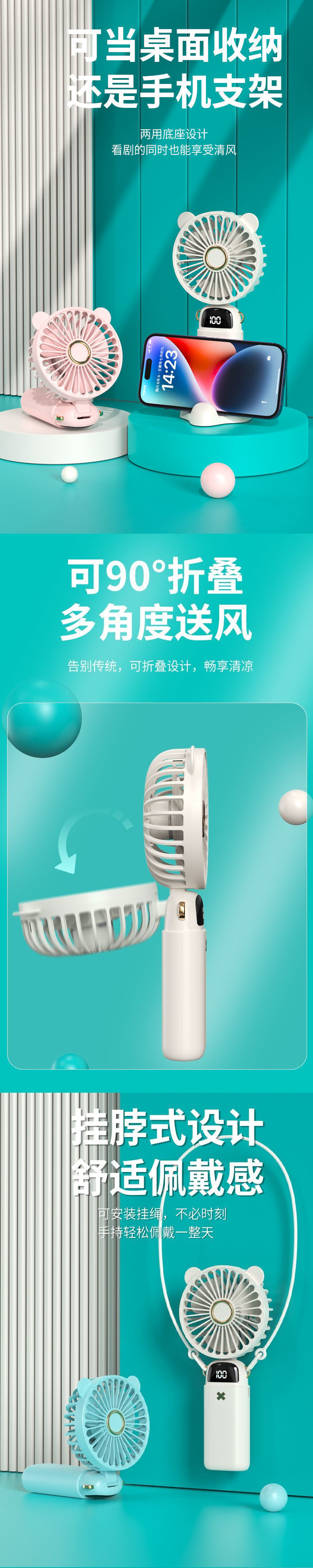 소형 팬 미니 충전식 새로운 야외 휴대용 교수형 목 팬 USB 데스크탑 팬 직장인 및 학생스토어 가기