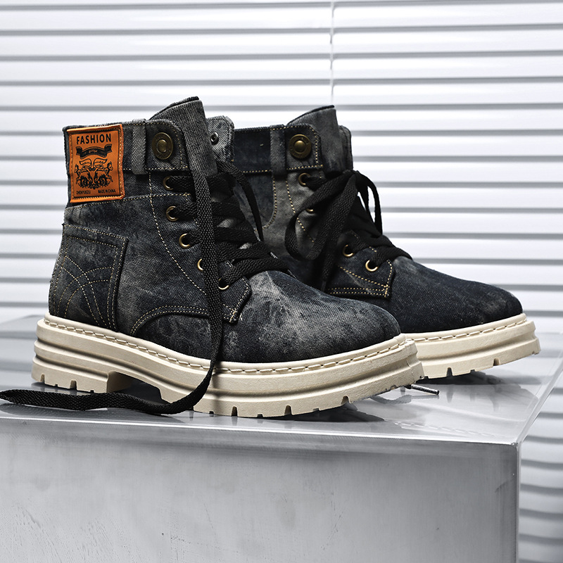 크로스보더 대형 봄, 가을 두꺼운 밑창 데님 마틴 부츠 작업복 복고풍 서양 캐주얼 짧은 부츠 통기성 천 남성 신발스토어 가기