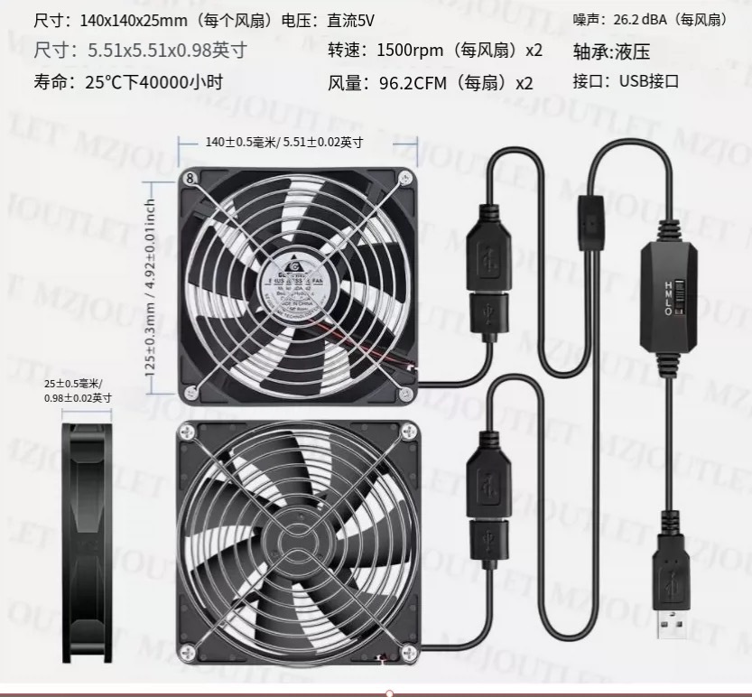 • 속도 조절기가 있는 14cm개의 이중 팬