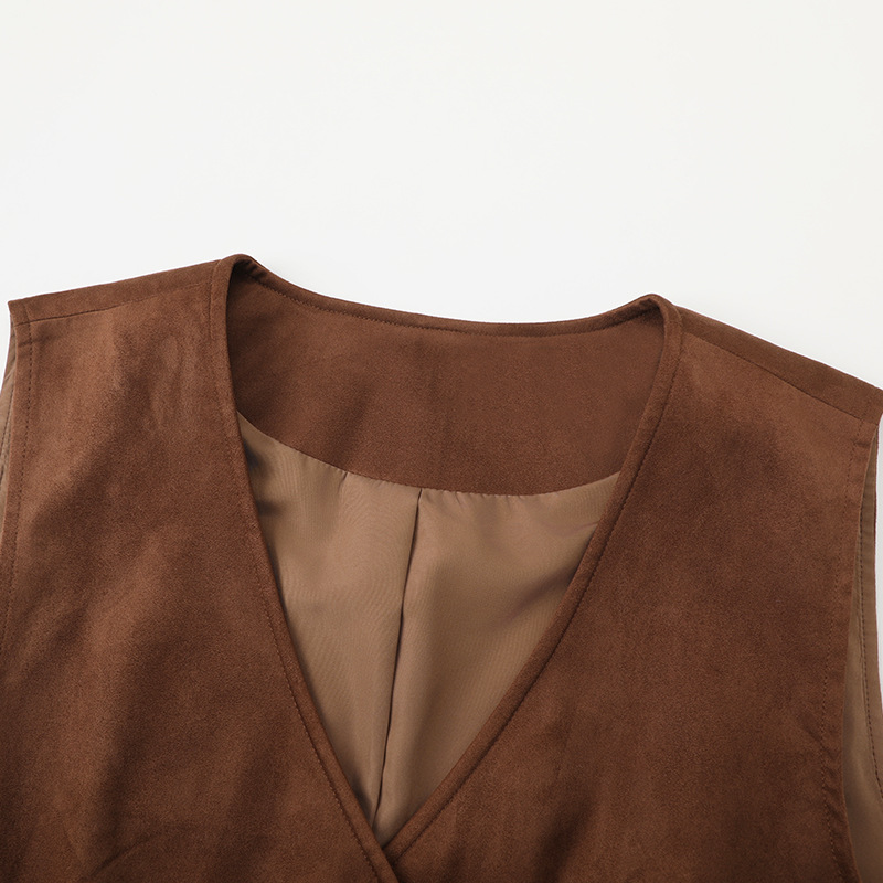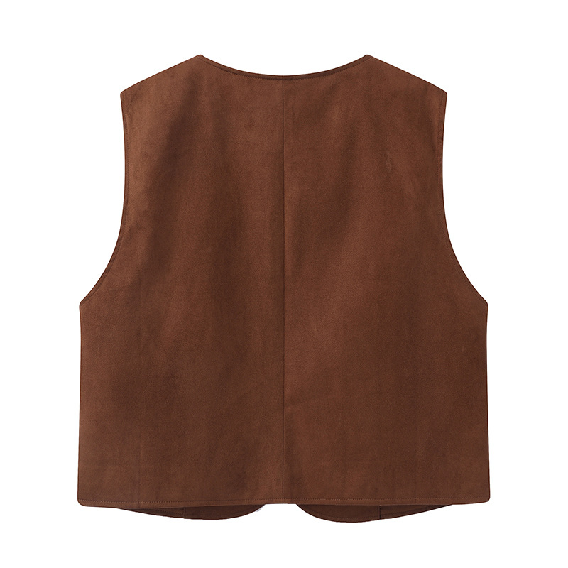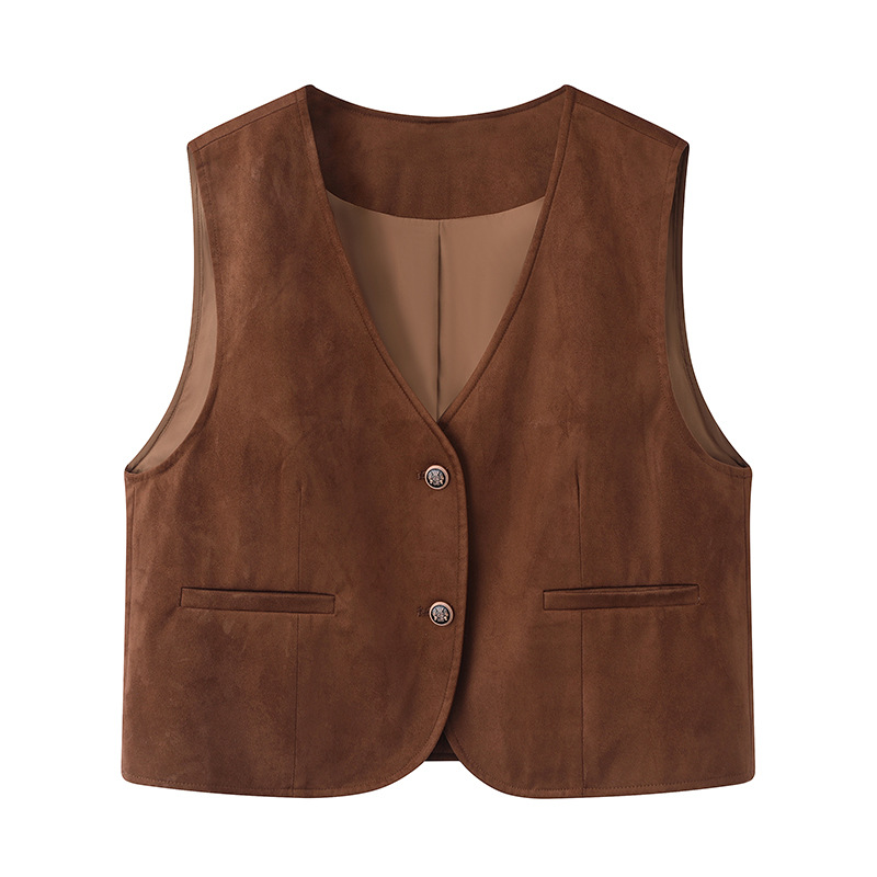 Maillard Suede Vest 여자 2025 봄/여름 새로운 짧은 V-Neck 조끼 2501T47