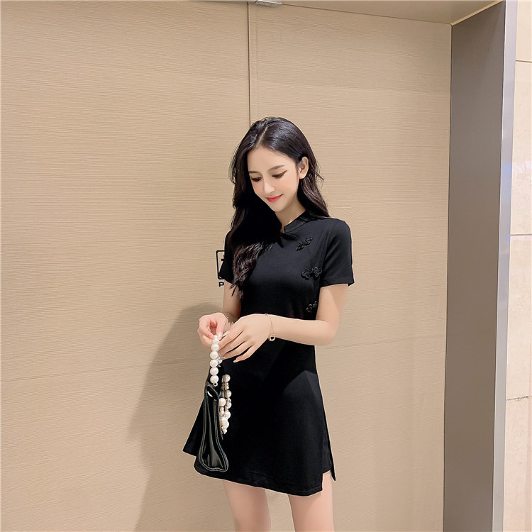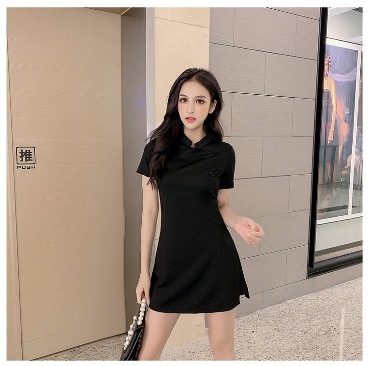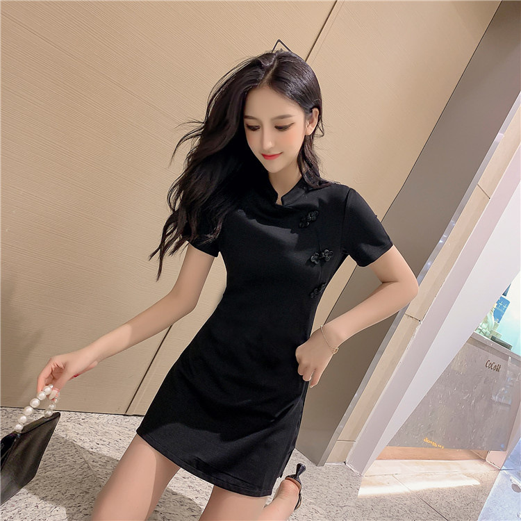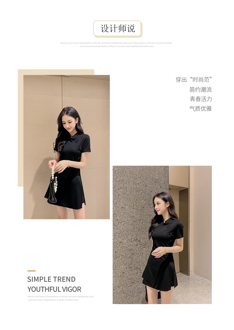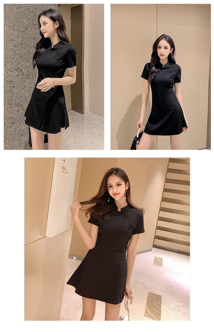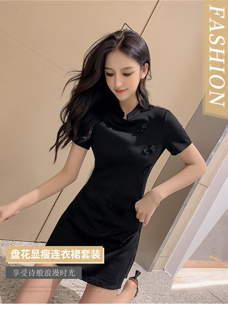 전국 패션 뉴 원피스 슬림핏 슬리밍 연예인 리틀 블랙 원피스 여성 여름 청삼 개선 투피스 패셔너블 플라워스토어 가기