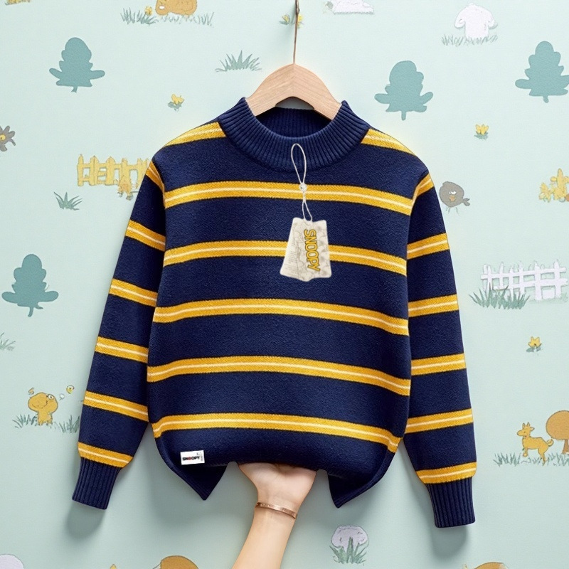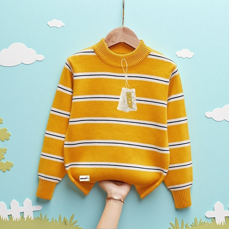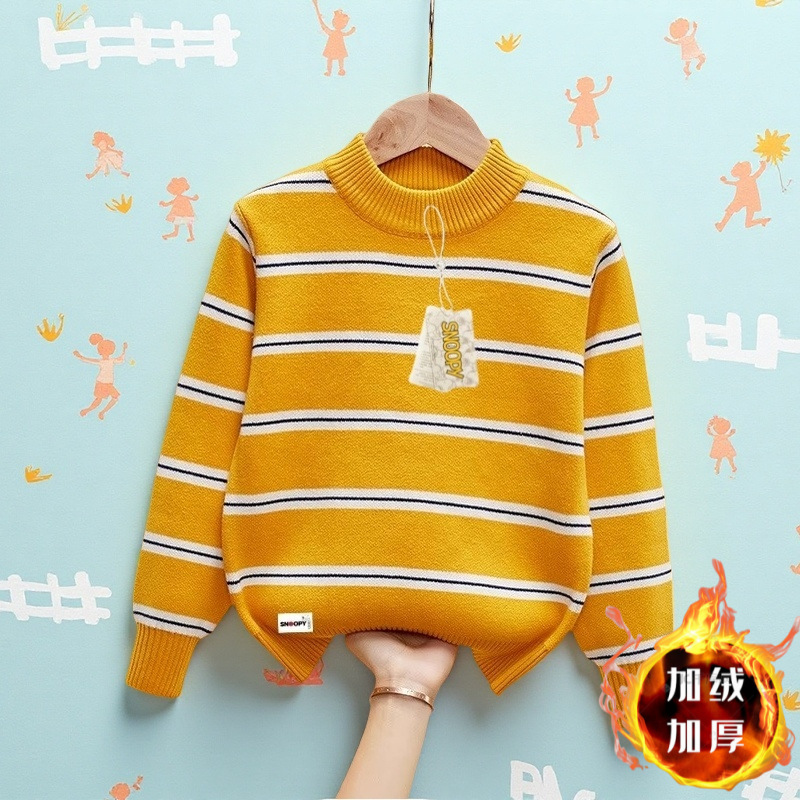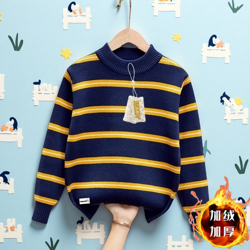 스누피 소년 순면 스웨터 가을, 겨울 스타일 중형 및 대형 아동용 벨벳 두꺼운 니트 바닥 셔츠 아동용 풀오버 탑