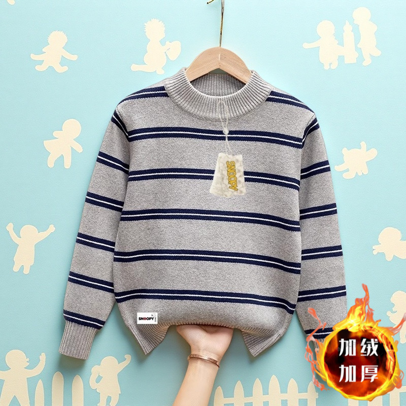 스누피 소년 순면 스웨터 가을, 겨울 스타일 중형 및 대형 아동용 벨벳 두꺼운 니트 바닥 셔츠 아동용 풀오버 탑스토어 가기