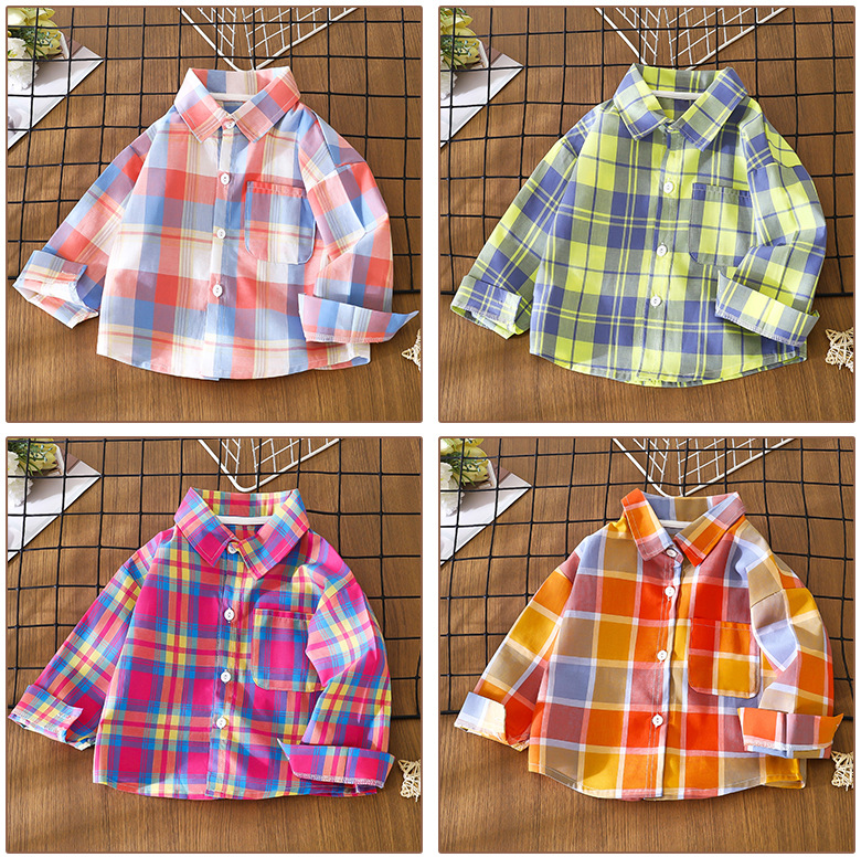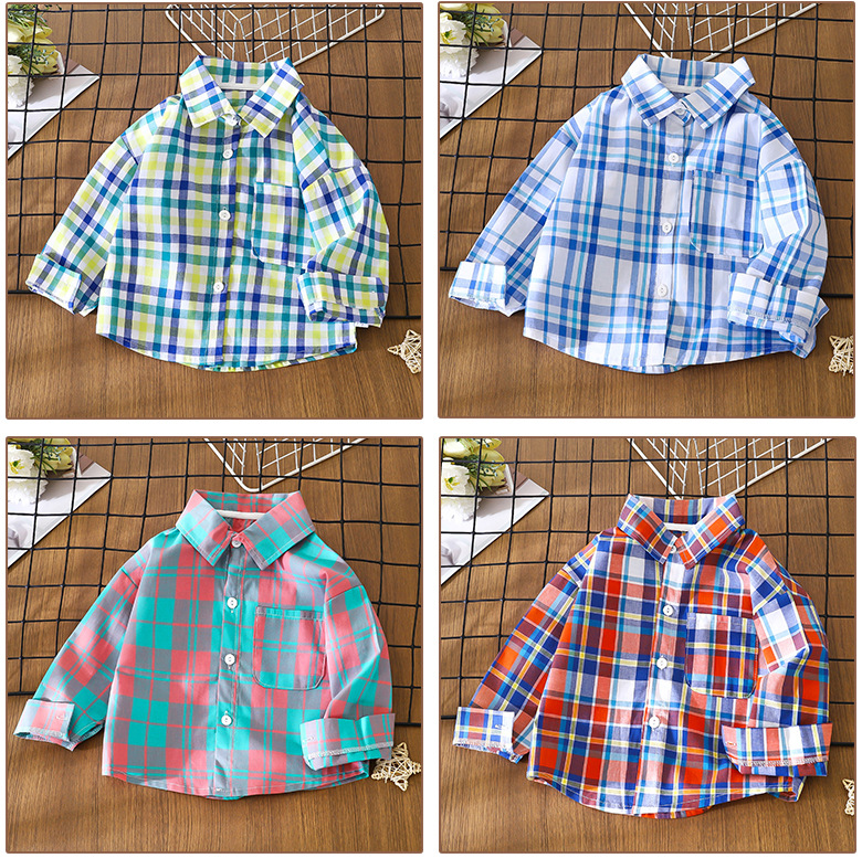 아동용 셔츠 남아용 2026년 신상 아기용 면 체크무늬 셔츠 봄, 가을 유아용 패셔너블한 라펠 카디건스토어 가기