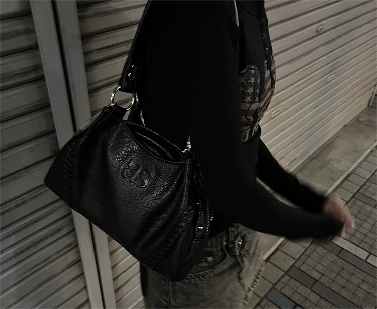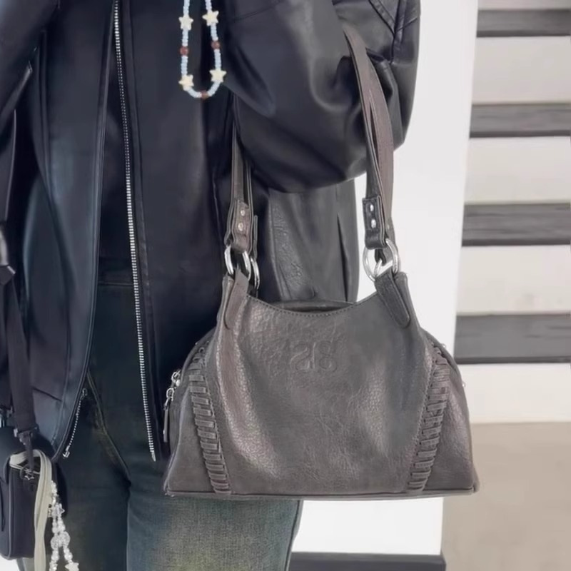 Aason hobo 가방 블로거 한국 24FW 가죽 오토바이 복고풍 한 어깨 겨드랑이 가방 대용량 핸드백