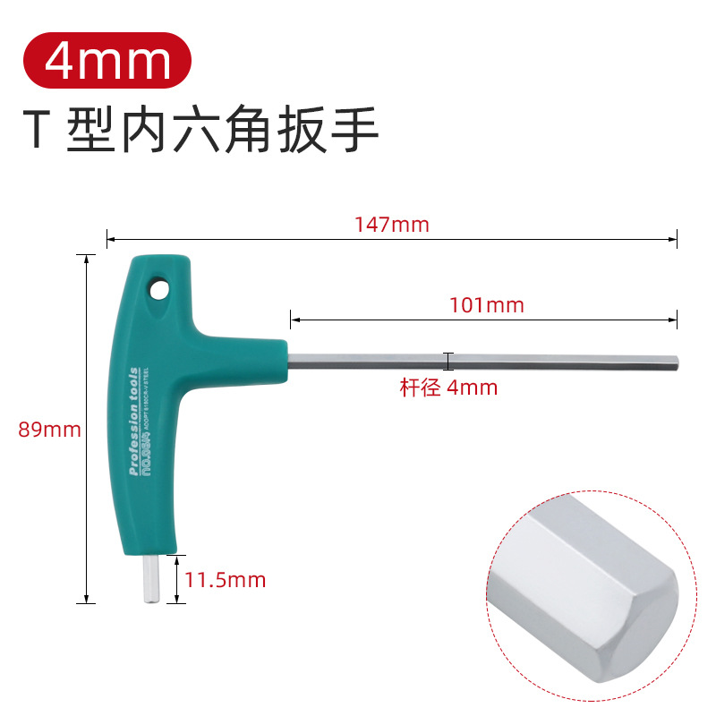 • 강화 T자형 내부 육각형 4mm(볼 헤드)