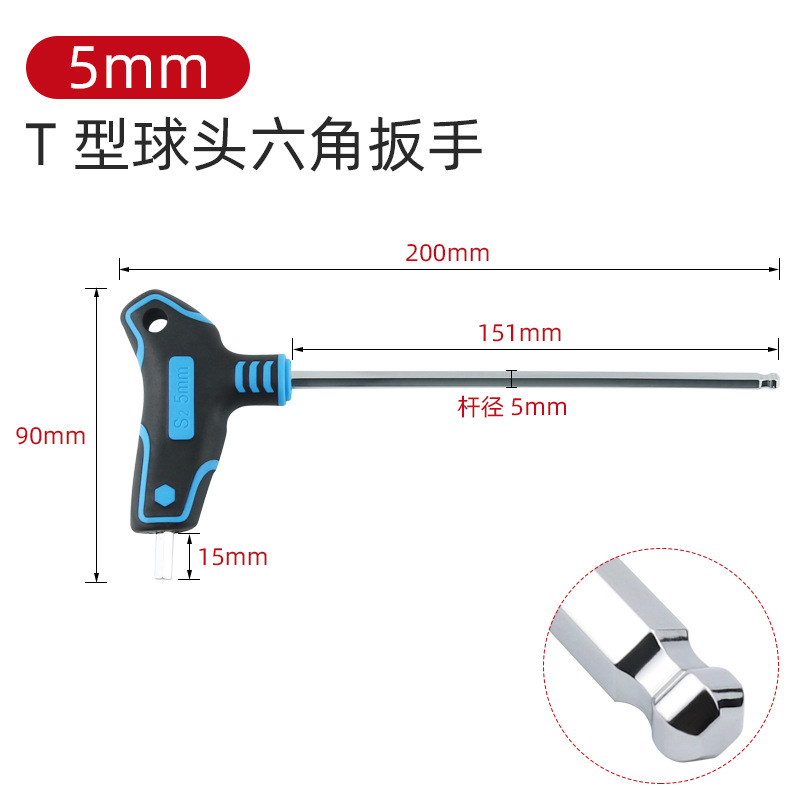 • 강화 T자형 내부 육각형 5mm(볼 헤드)