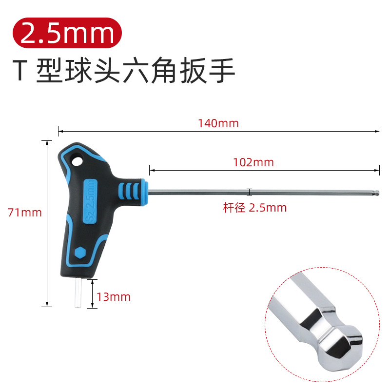 • 경화 T자형 내부 육각형 2.5mm(볼 헤드)