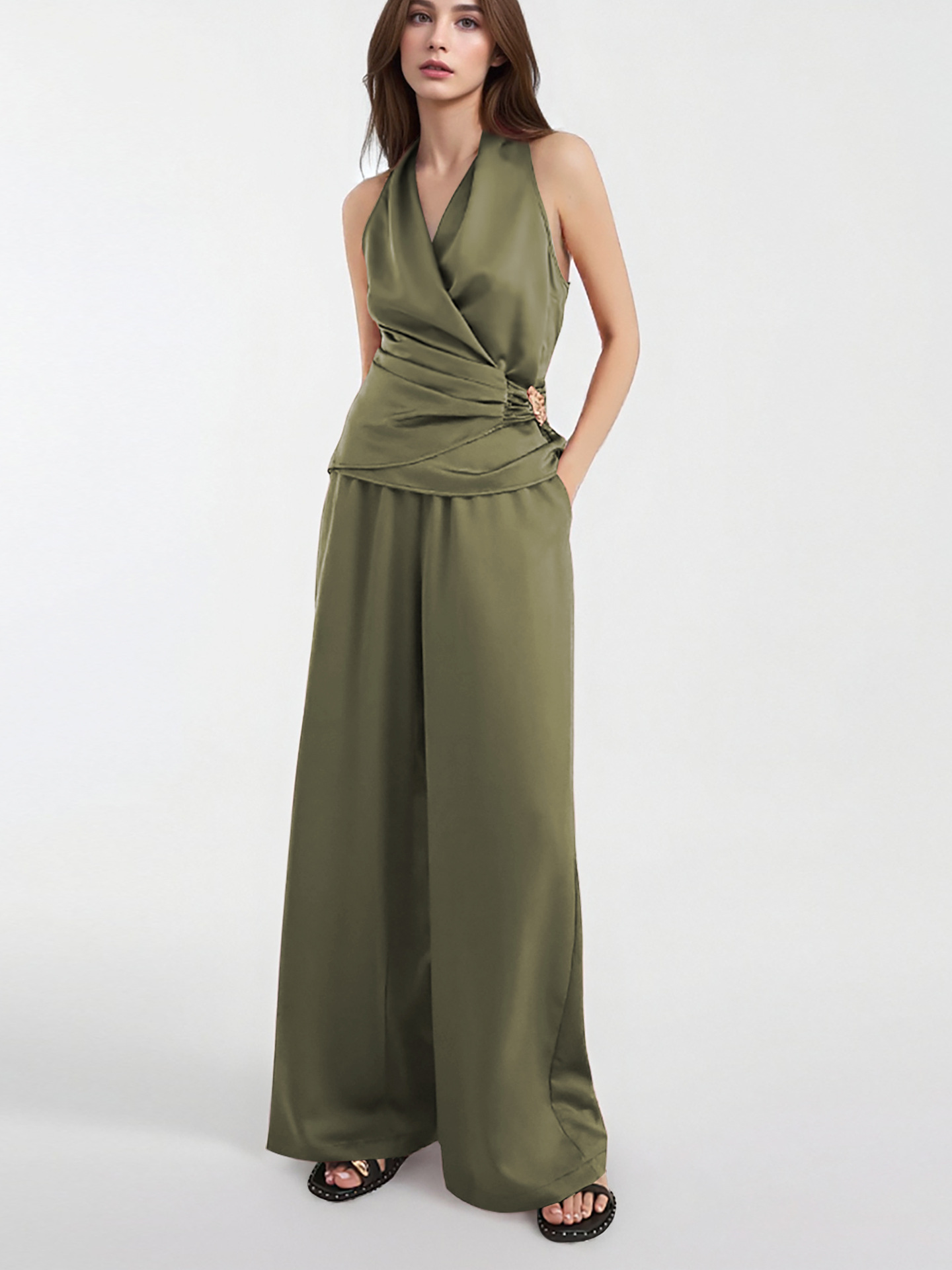 아마존 독립 스테이션 하이 퀄리티 2 피스 민소매 조끼 높은 허리 넓은 다리 바지 세트 여름 새로운