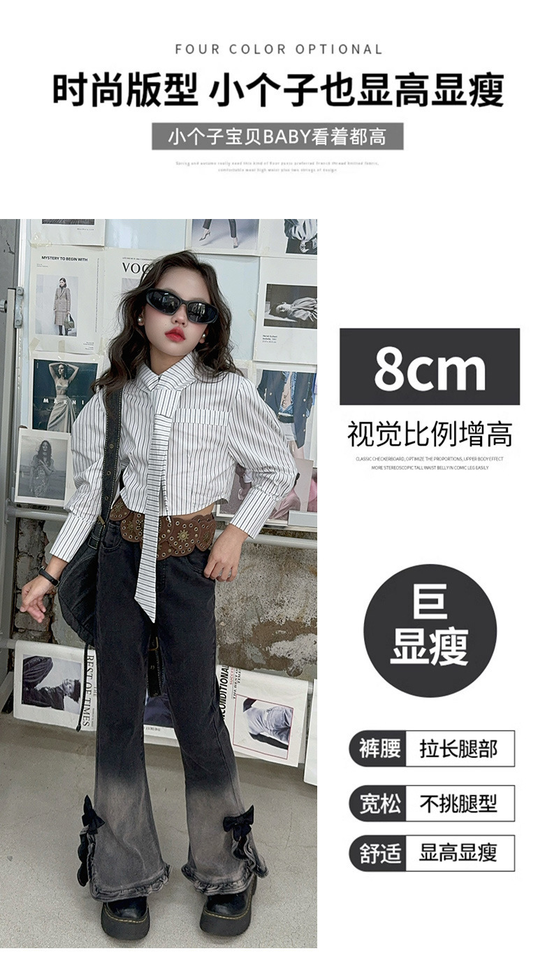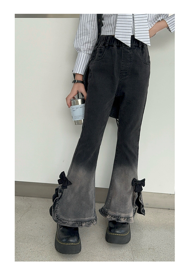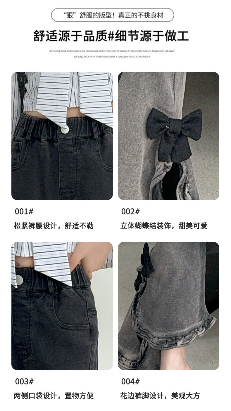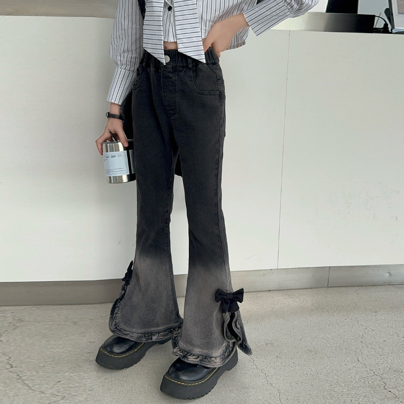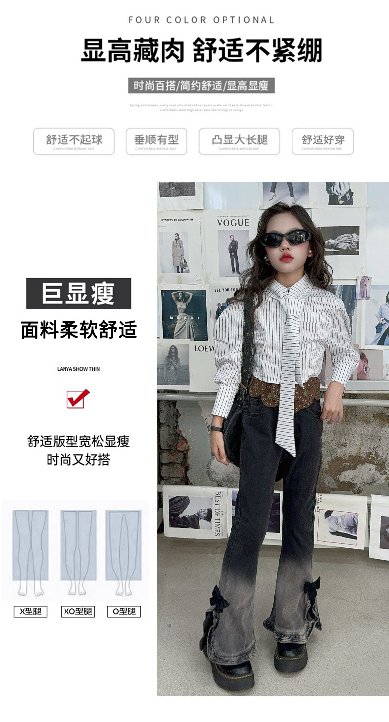 새로운 가을 꽃 바지 2024 바지 서양식 빅 보이 걸스 청바지 봄 가을 슬림 한 한국 스타일 착용