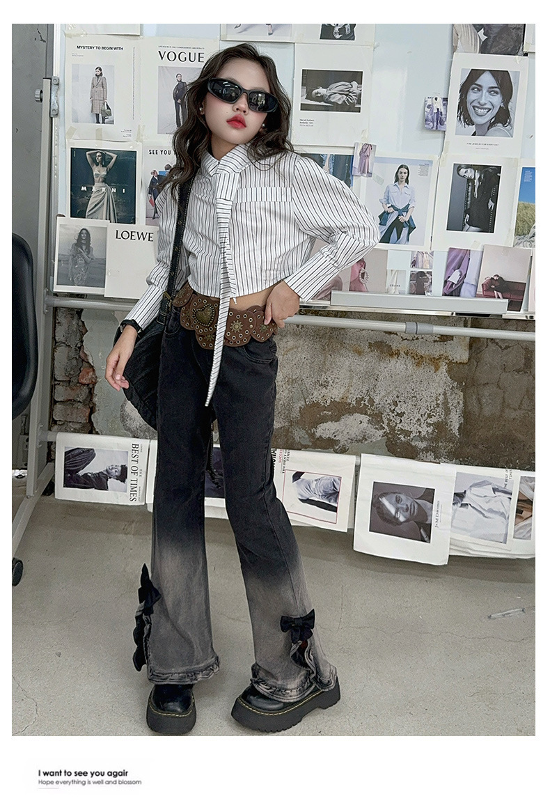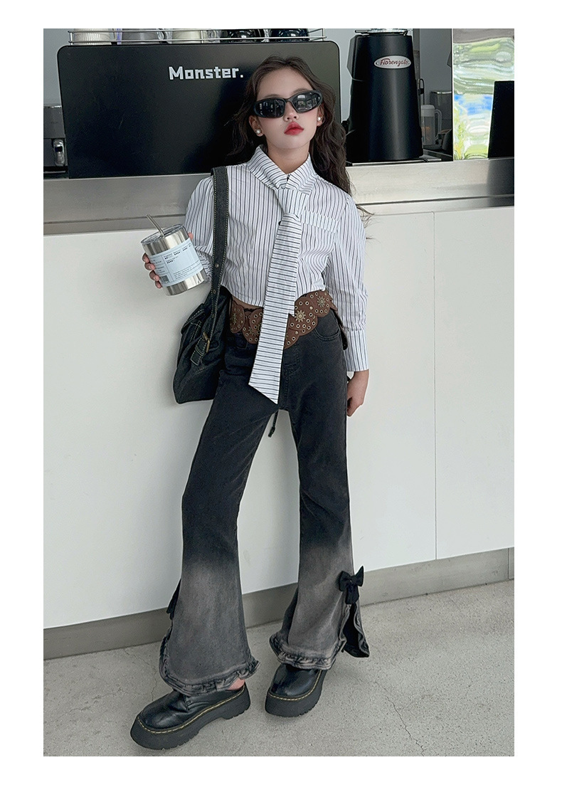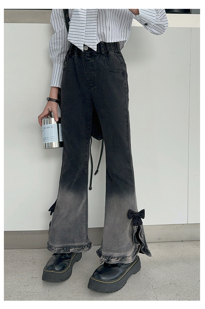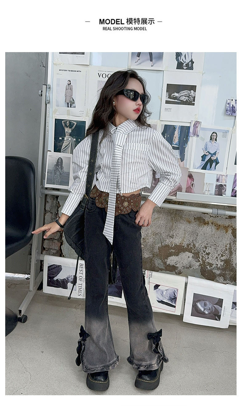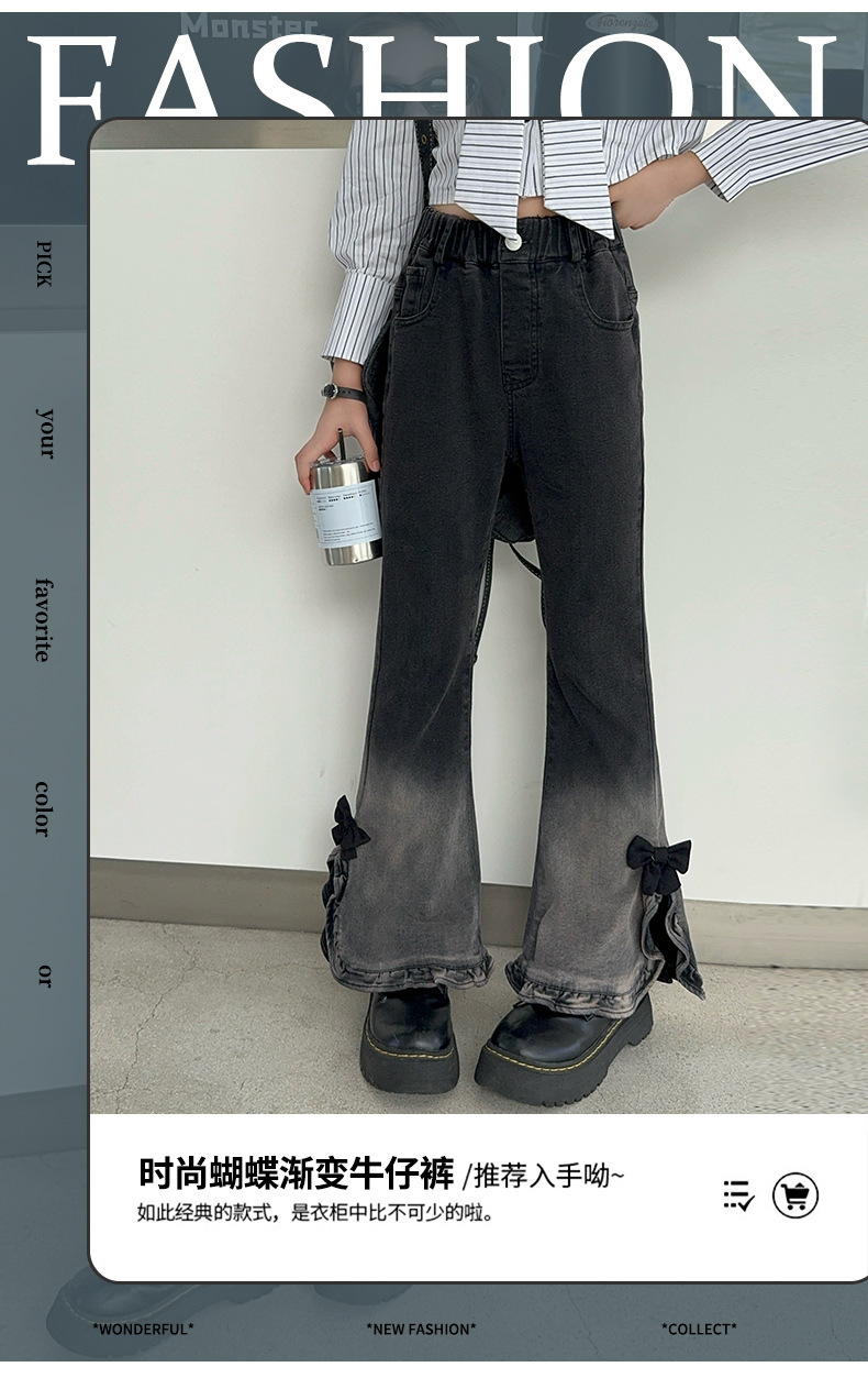 새로운 가을 꽃 바지 2024 바지 서양식 빅 보이 걸스 청바지 봄 가을 슬림 한 한국 스타일 착용