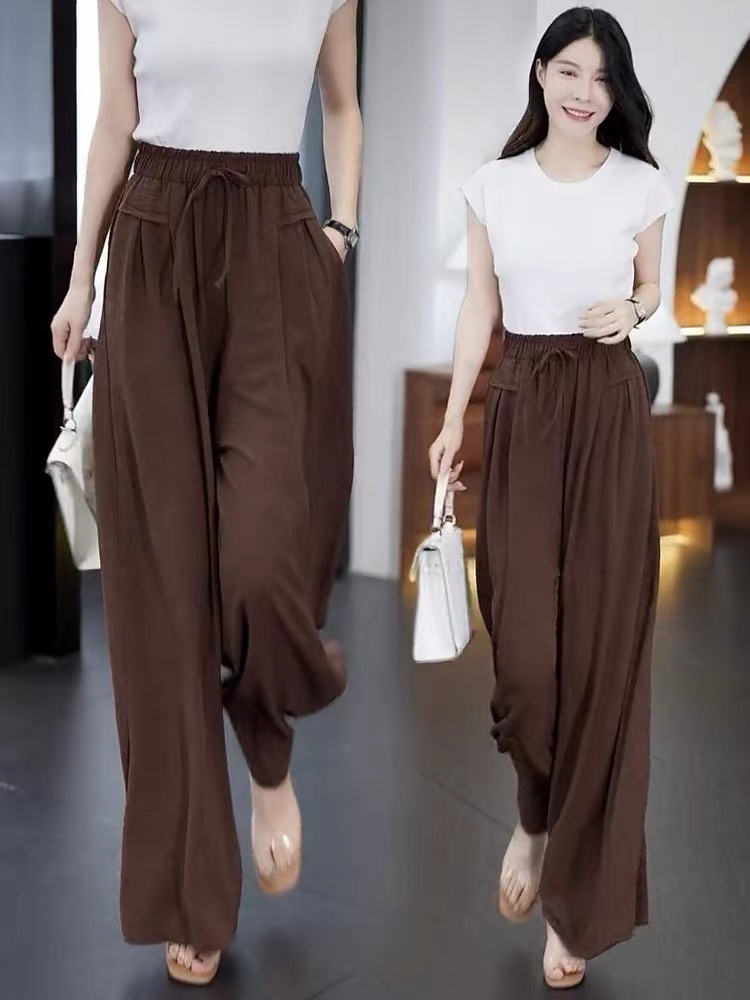 새로운 와이드 레그 바지 여자 여름 얇은 캐주얼 여자 바지 플러스 사이즈 올 매치 하이 웨이스트 데프 컬로 테스 여자 야마모토 바지스토어 가기
